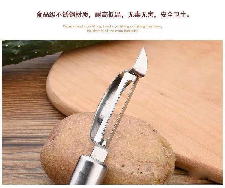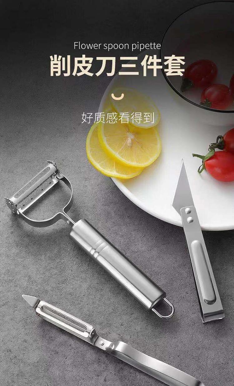 Juego de tres piezas de pelador de patatas multifuncional de acero inoxidable para cocina, pelador, cortador y raspador.