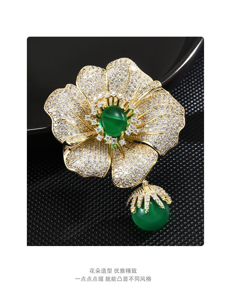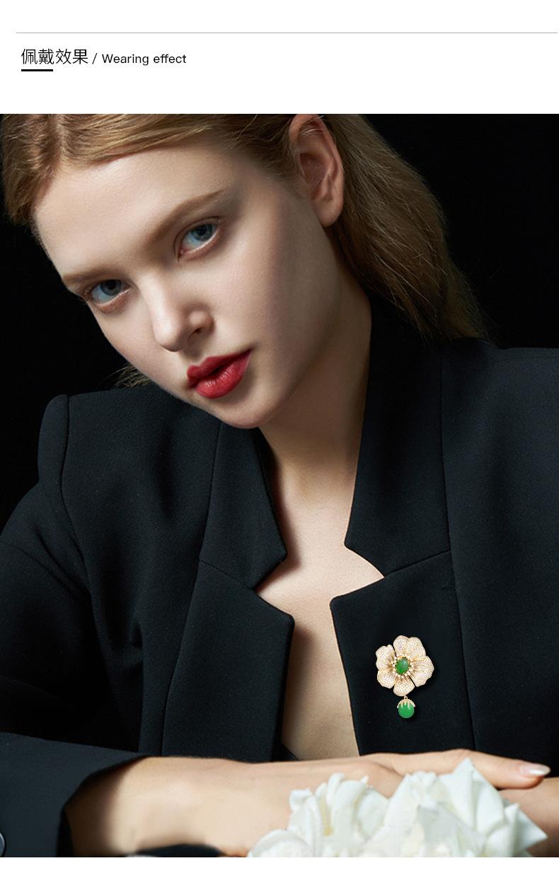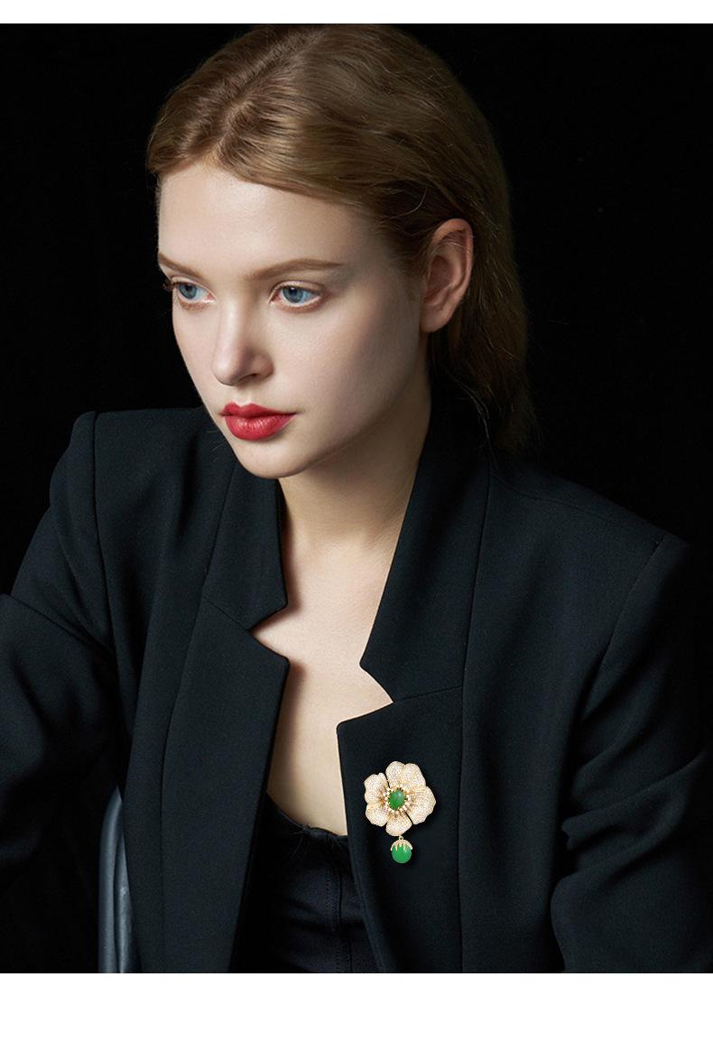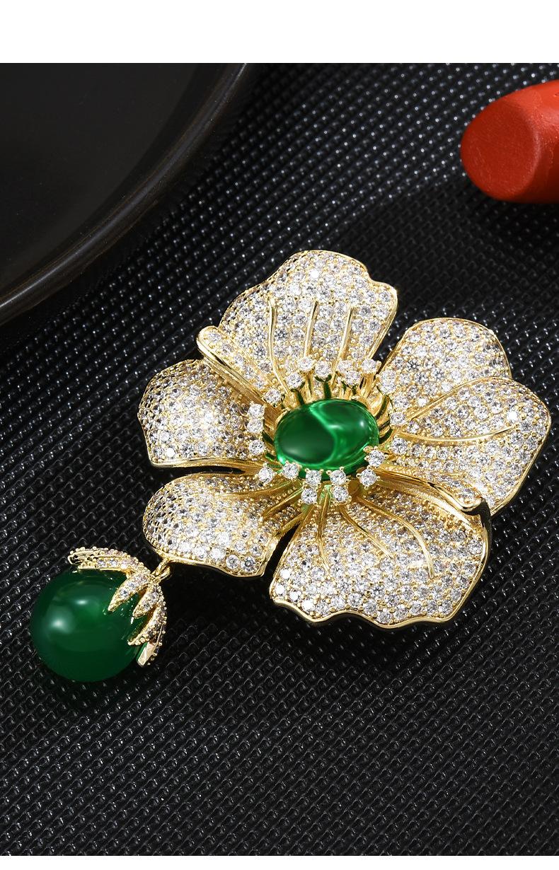Broche elegante de flor esmeralda, diseño exquisito de lujo, ramillete exquisito, regalo de moda que combina con todo.