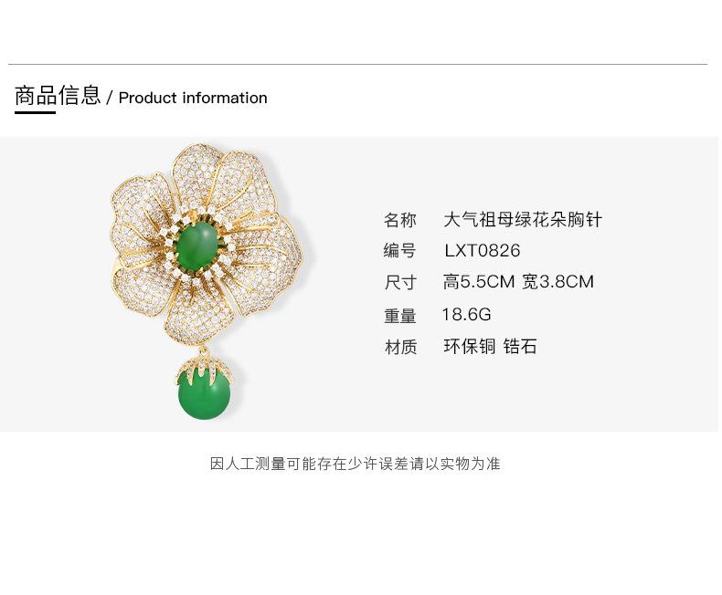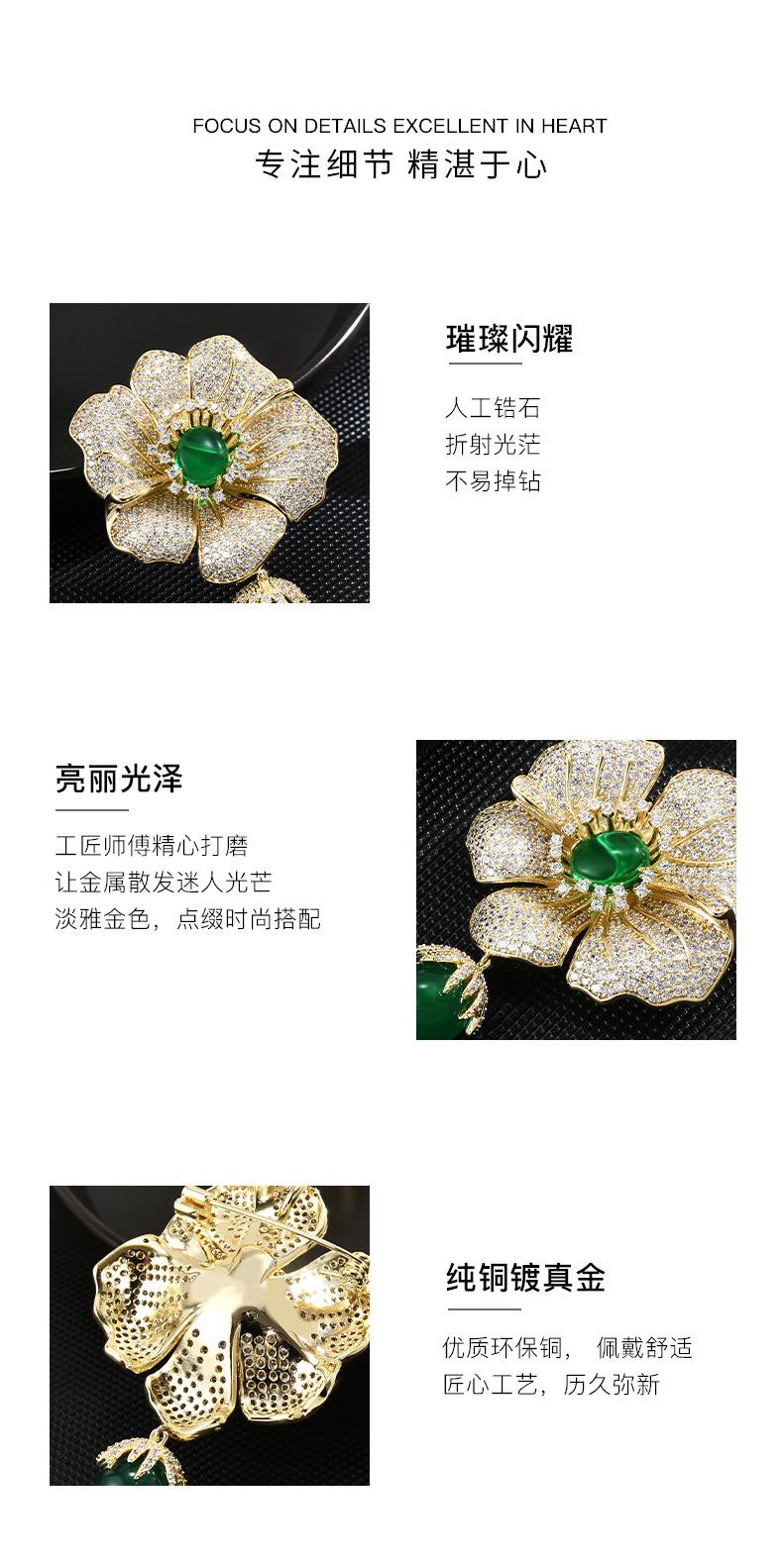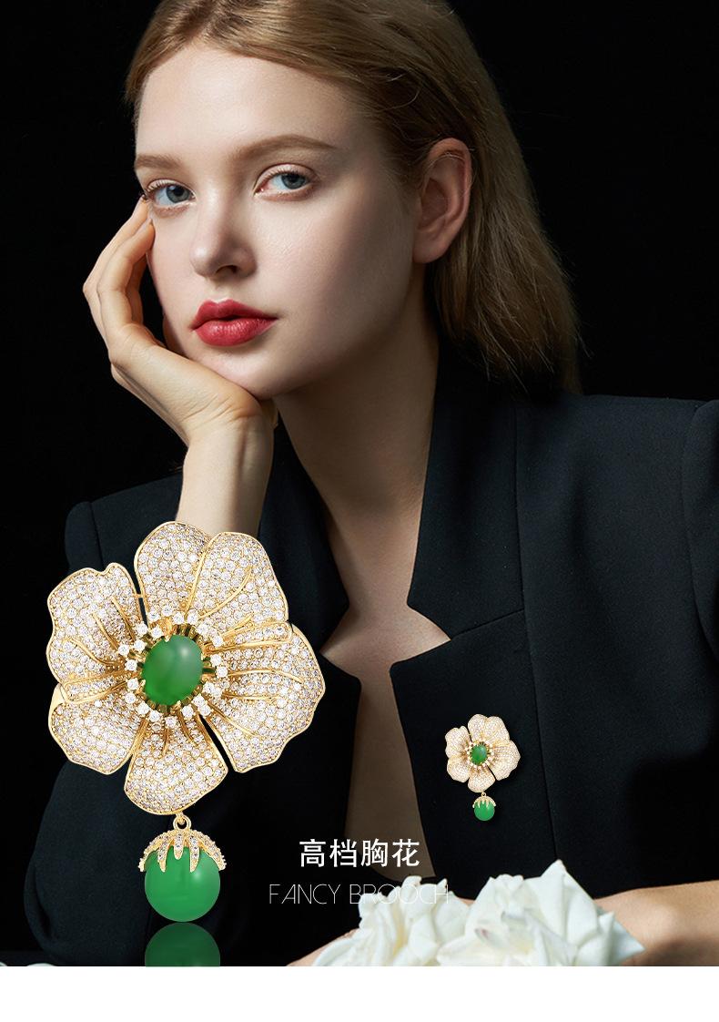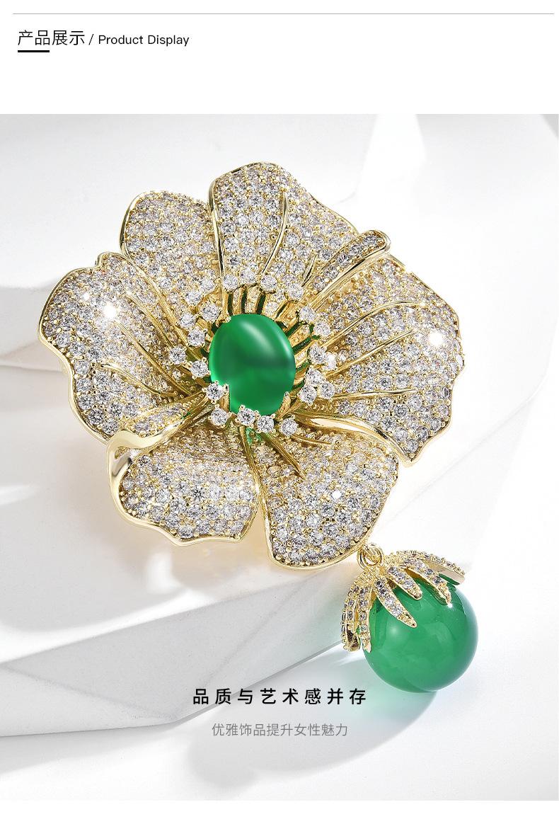 Broche elegante de flor esmeralda, diseño exquisito de lujo, ramillete exquisito, regalo de moda que combina con todo.