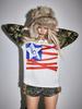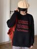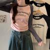 Camiseta de manga larga con estampado de letras de estilo americano para mujer, diseño de contraste de color, manga raglán, cordón de algodón, cintura adelgazante, top de otoño