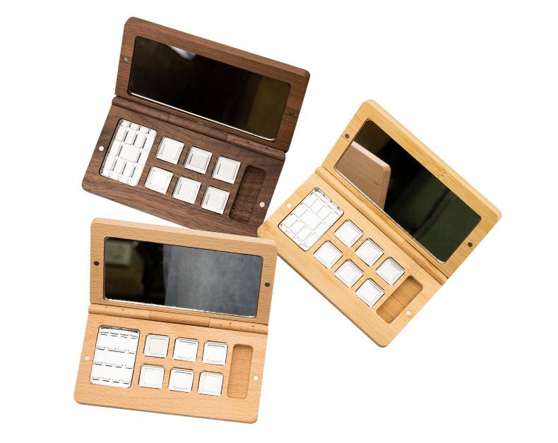 Paleta de Sombras de Ojos de Bambú Estuche Vacío Empaque Magnético Cuadrado Multicolor Organizador de Rubor Cosmético con Espejo