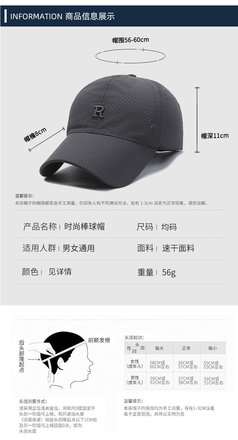 Compra Gorra de red con letra R nueva de primavera y verano, gorra para exteriores para hombres y mujeres, gorra de secado rápido, parasol, protector solar, transpirable, deportiva, gorra de béisbol al por mayor en Joom.pro