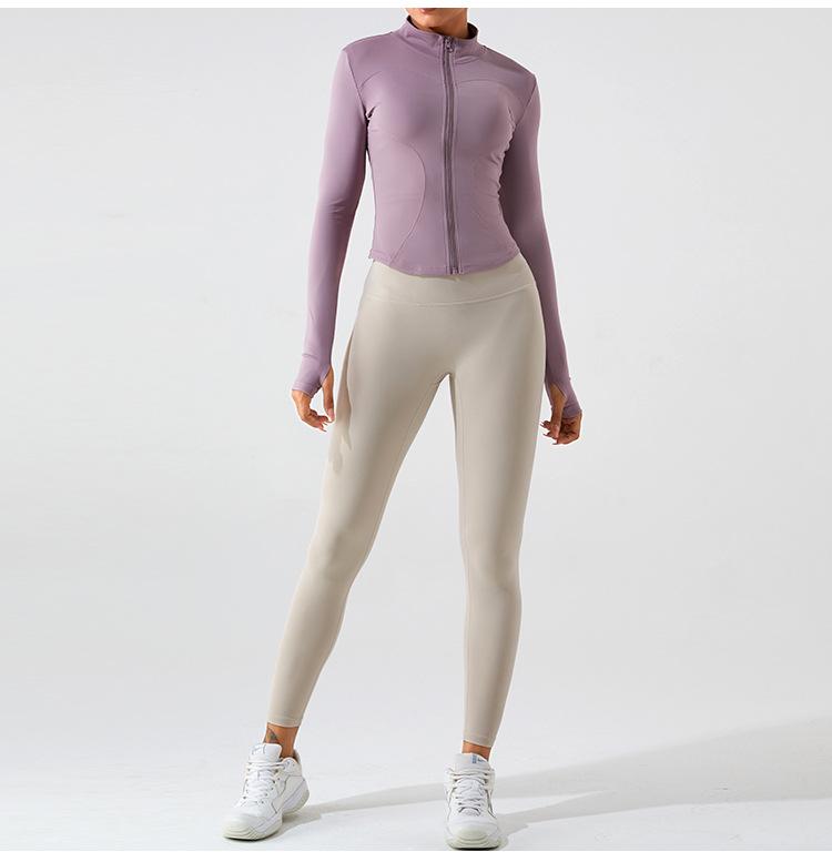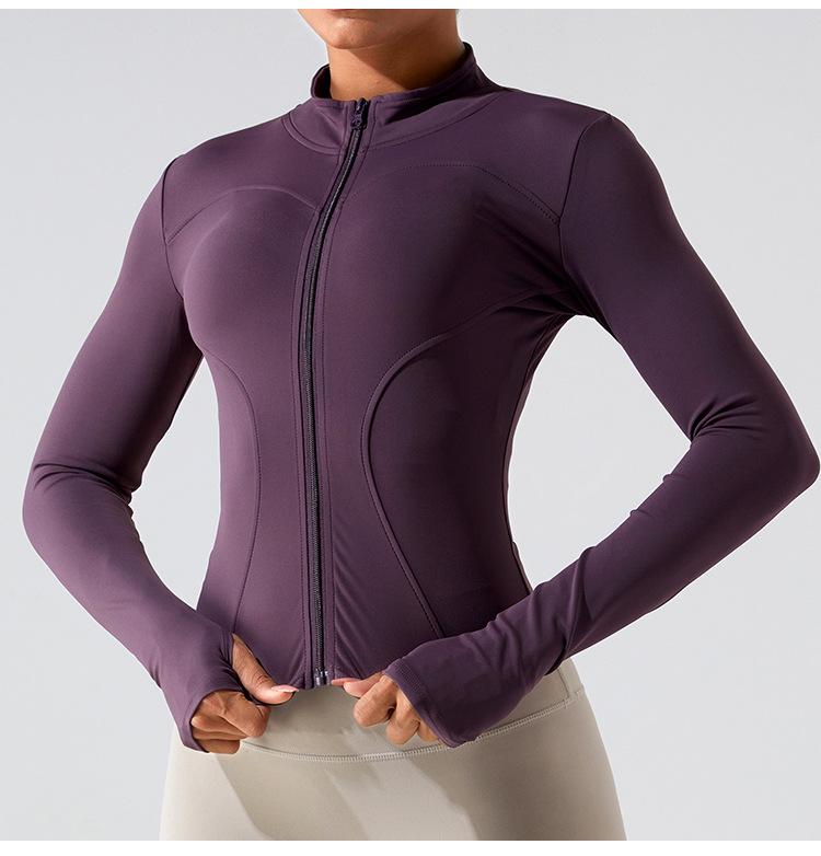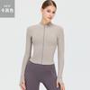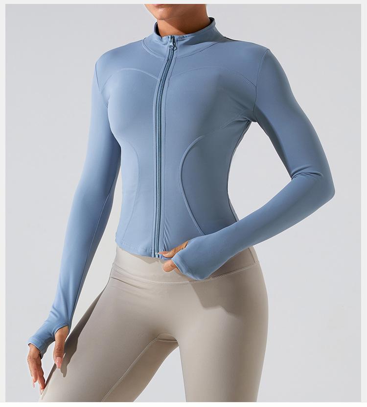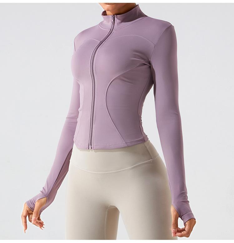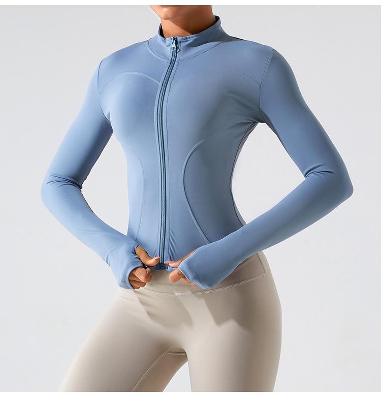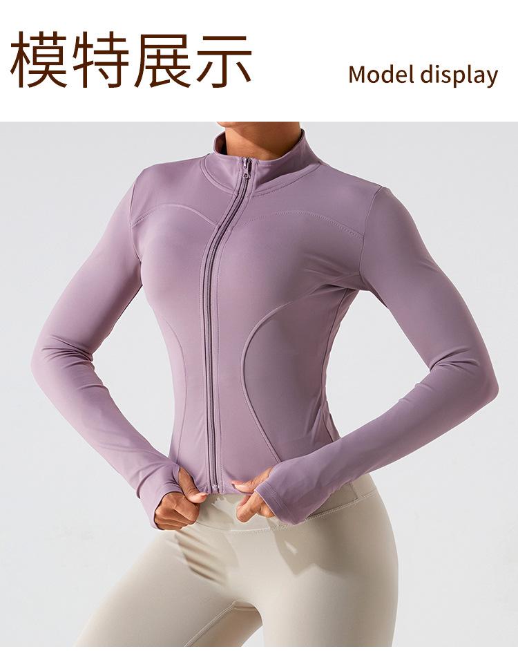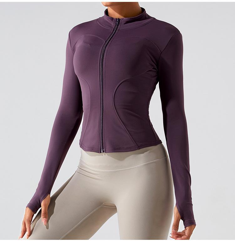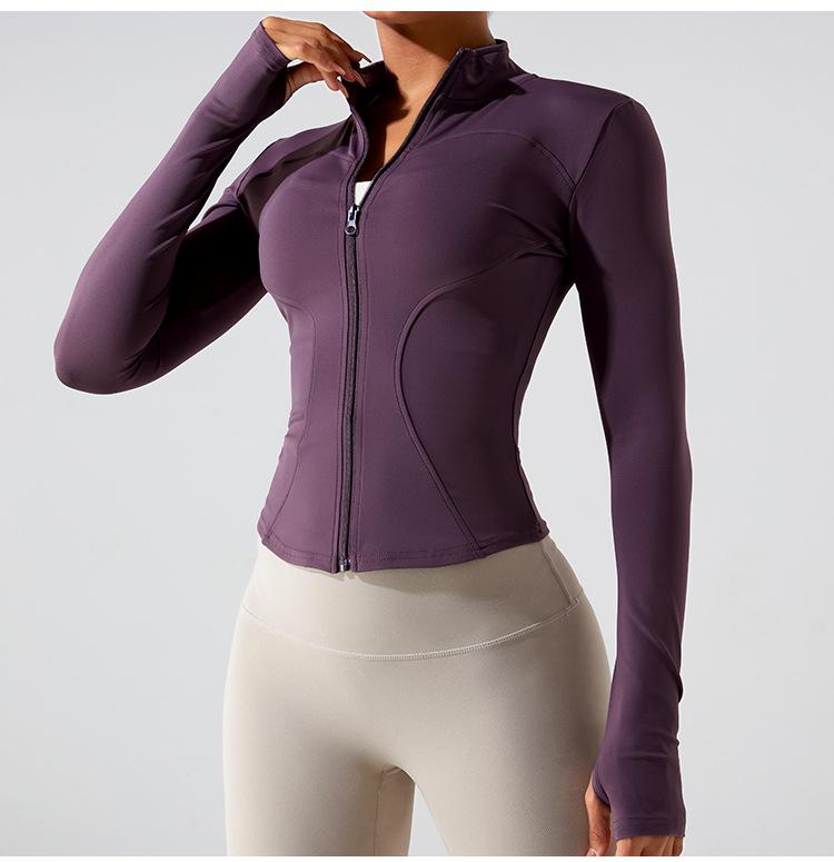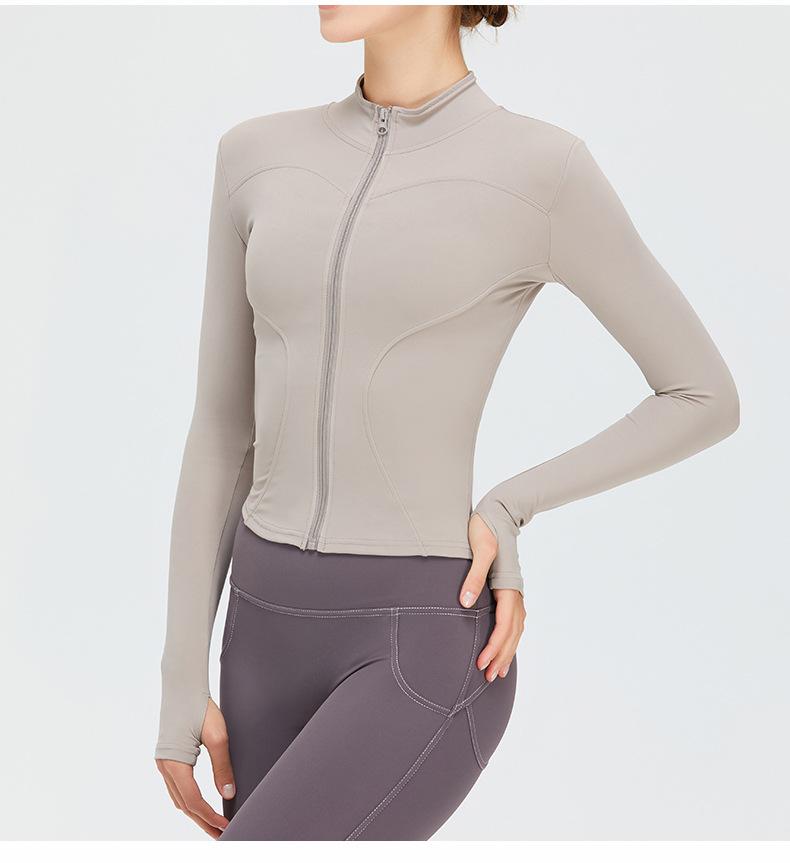 Chaqueta de yoga de manga larga con cremallera, nueva chaqueta de yoga de estilo europeo y americano, de secado rápido, para adelgazar, para correr y hacer ejercicio, para mujer.