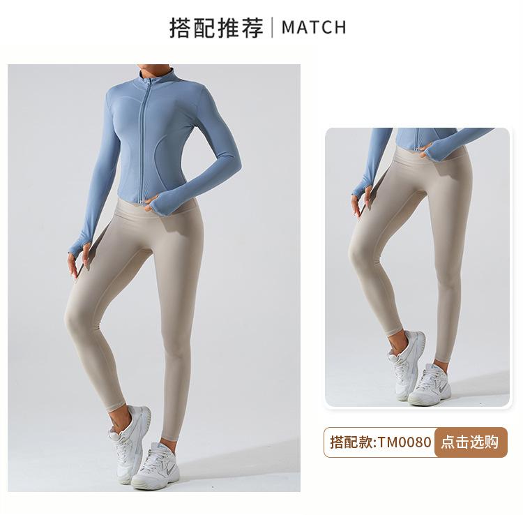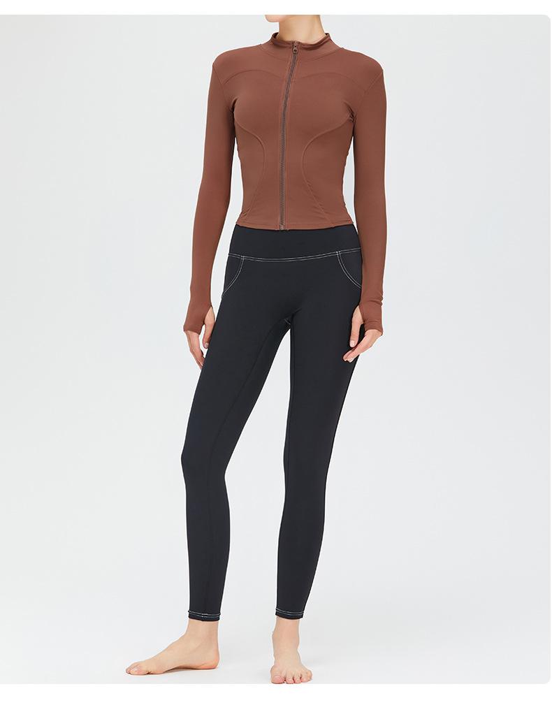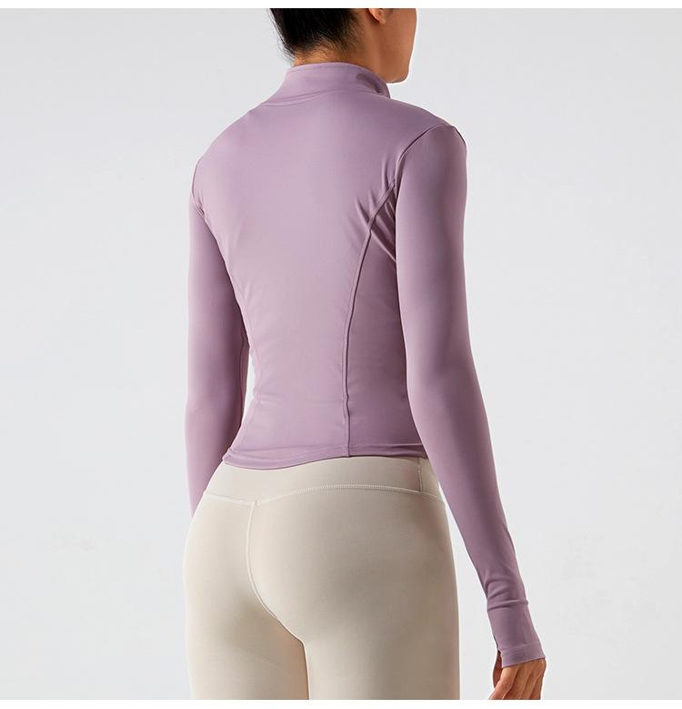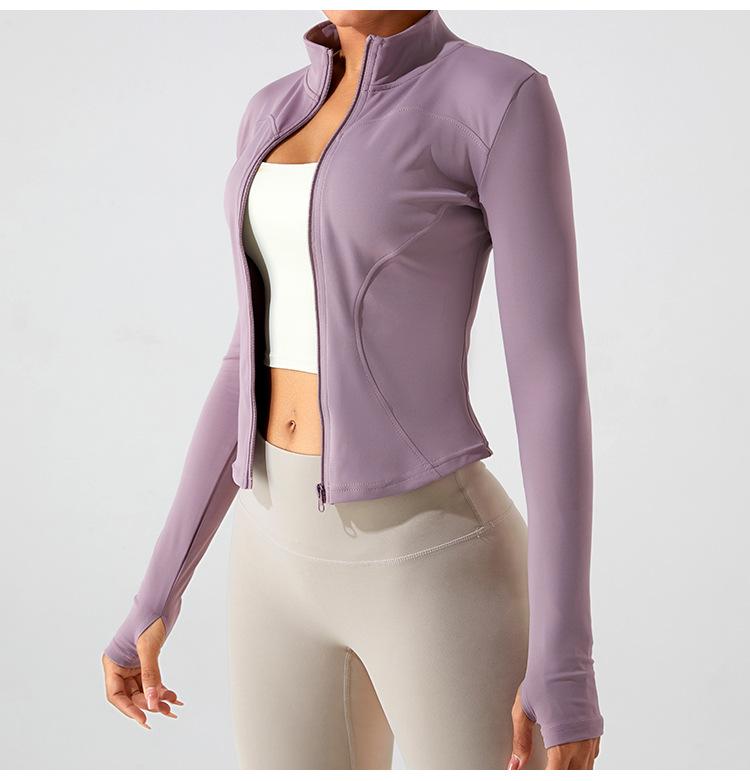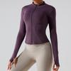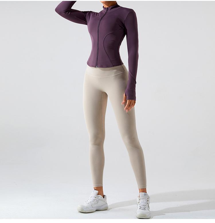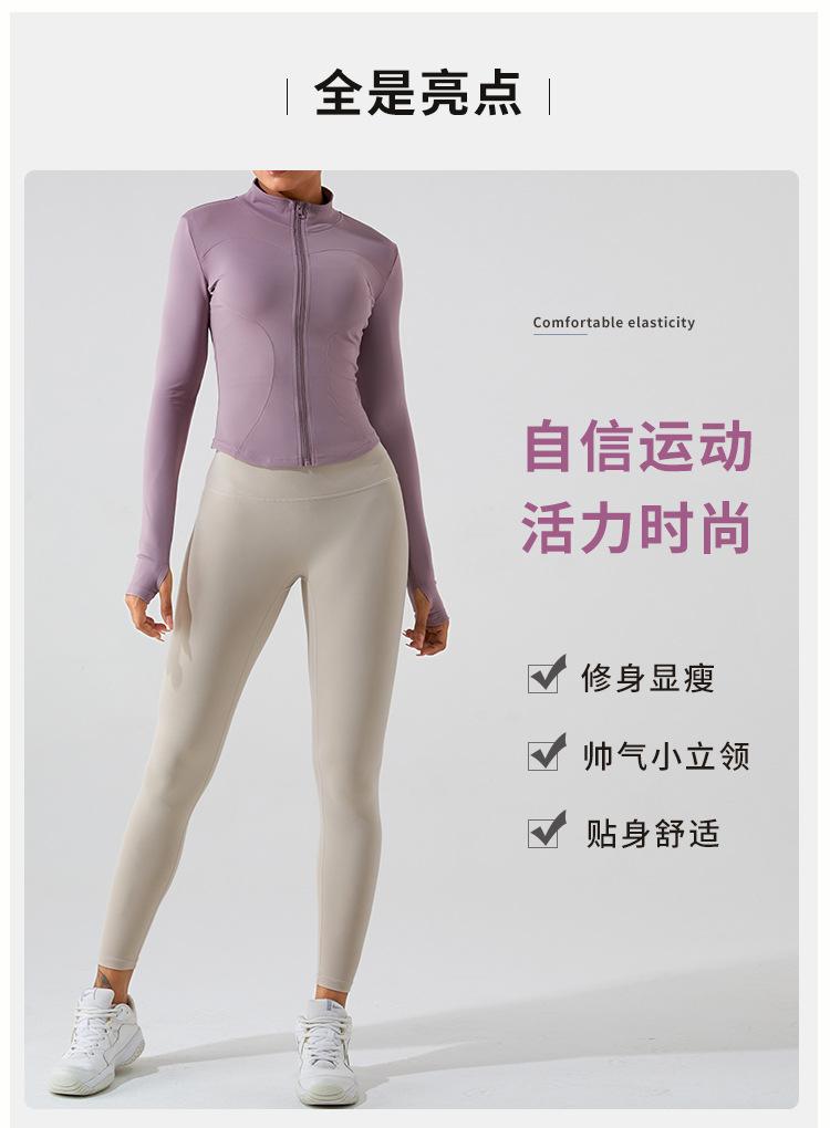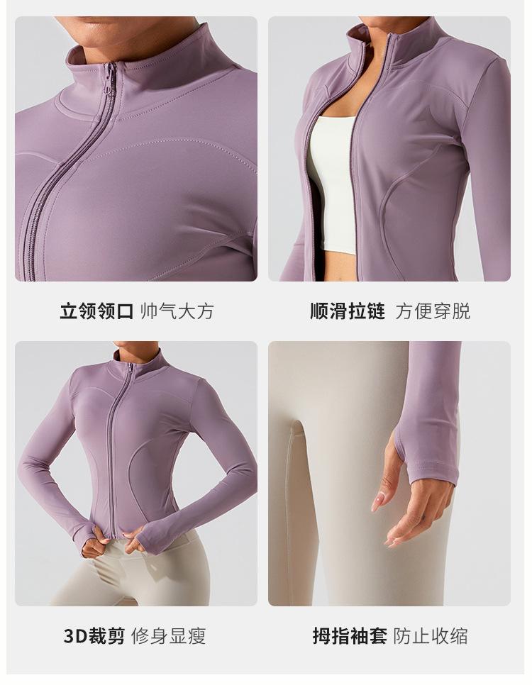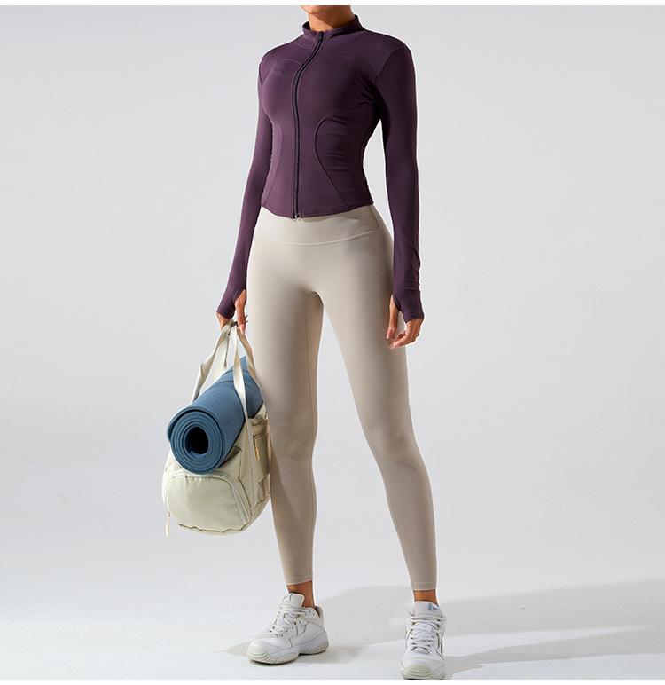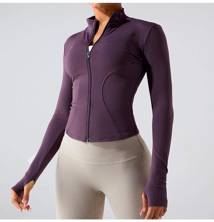 Chaqueta de yoga de manga larga con cremallera, nueva chaqueta de yoga de estilo europeo y americano, de secado rápido, para adelgazar, para correr y hacer ejercicio, para mujer.