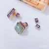 Olive yellow zircon S925 Silver Needle, Light blue zircon S925 Silver Needle