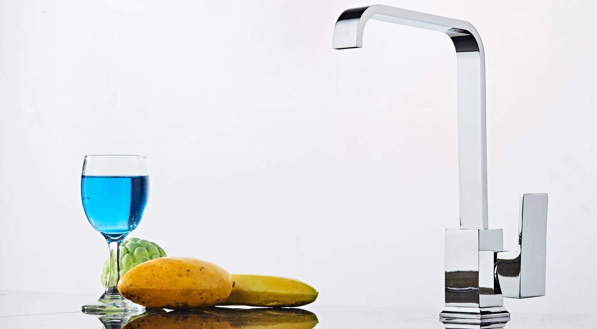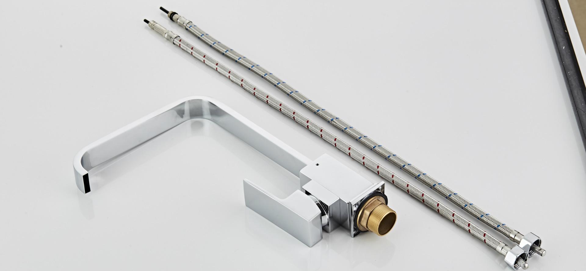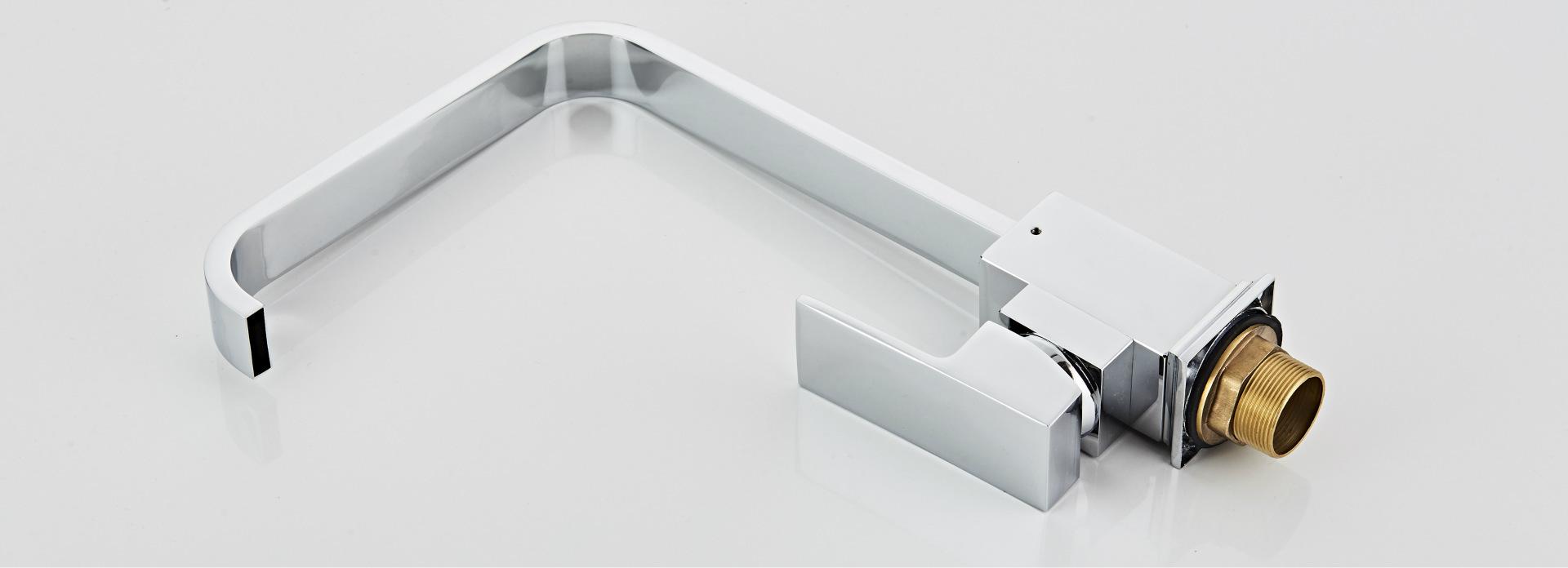 Grifo de cocina de cobre, fregadero, lavabo para verduras, lavabo, grifo mezclador de agua caliente y fría, tubo plano cuadrado, salida de agua giratoria