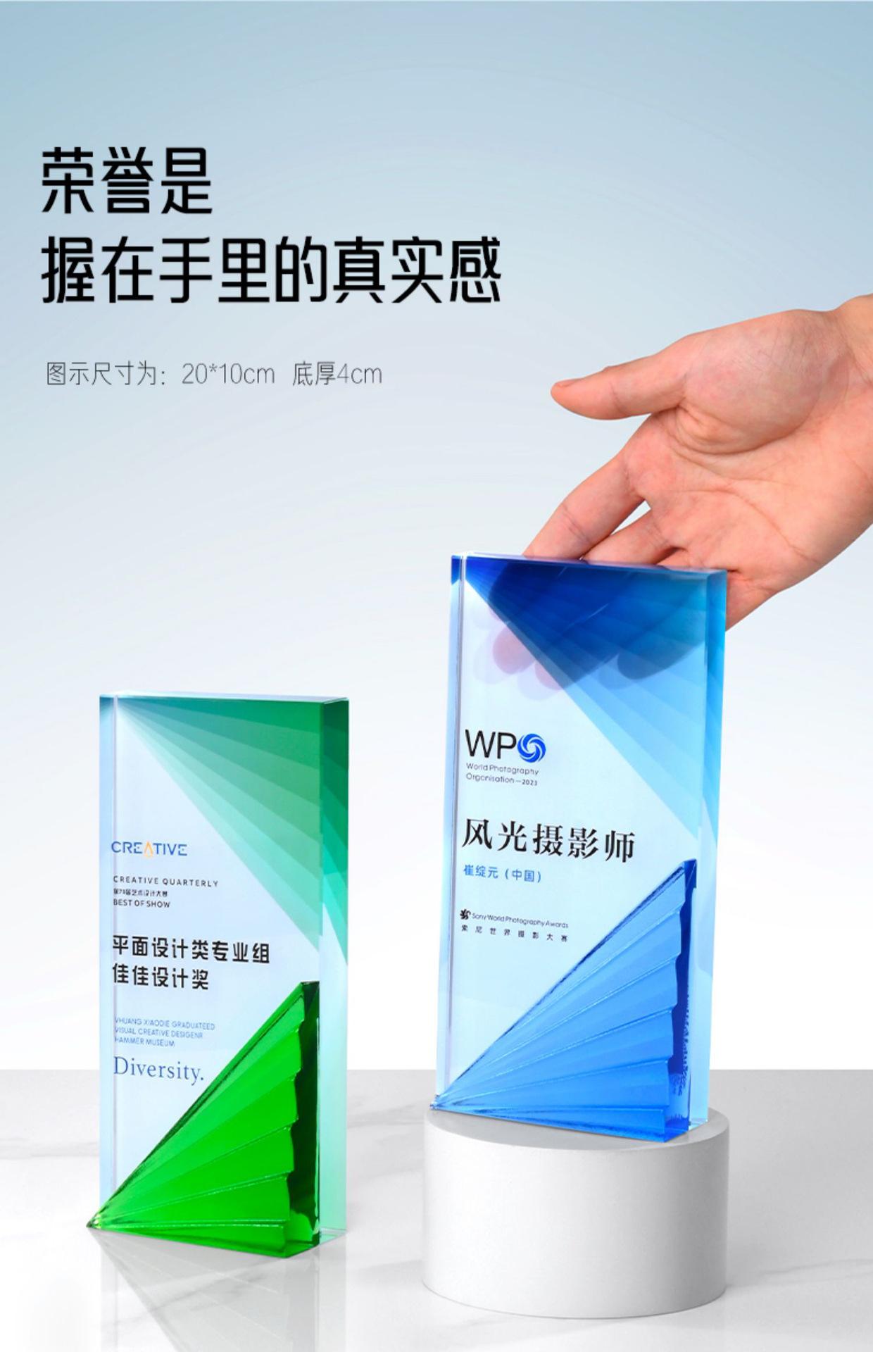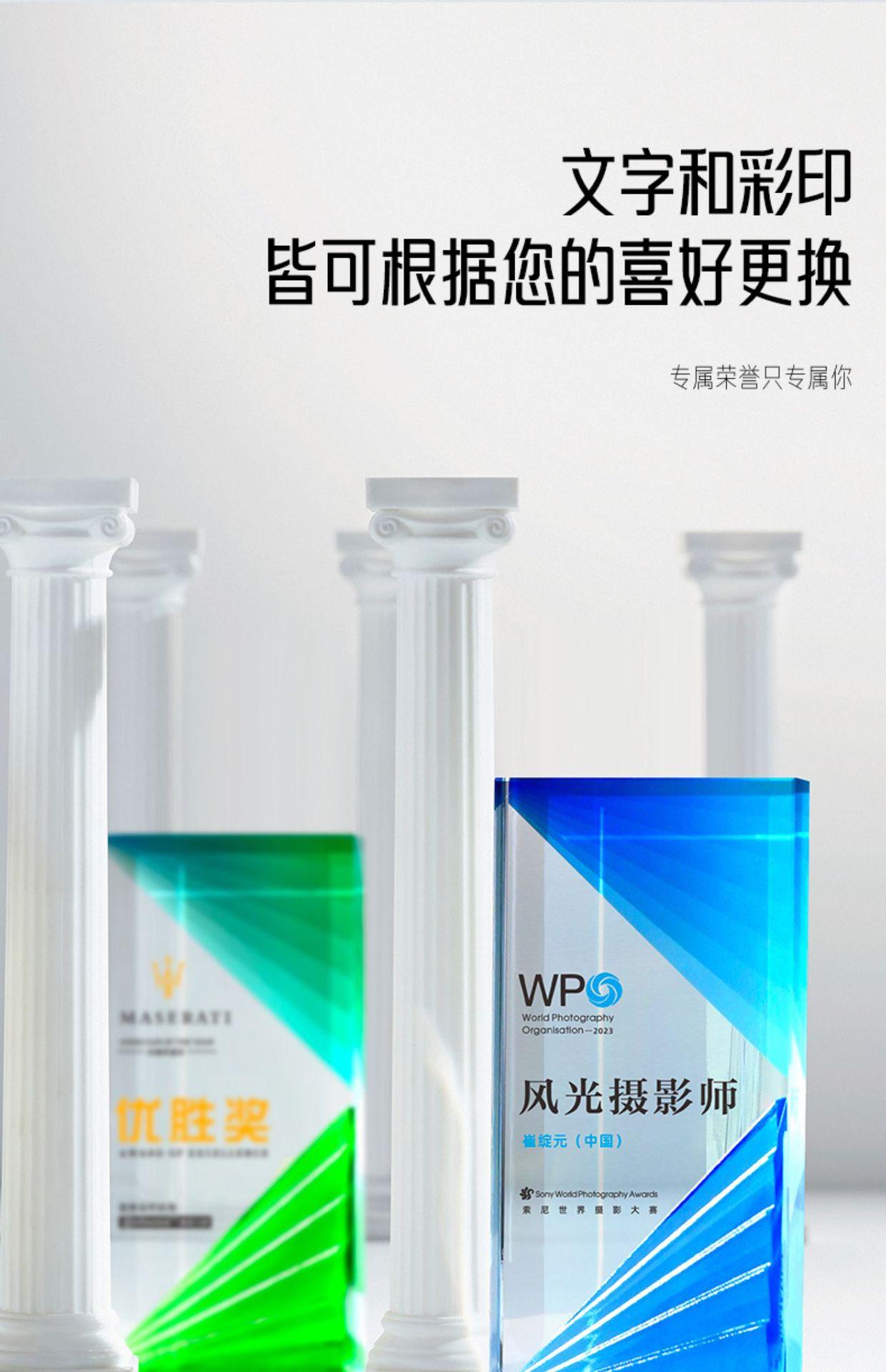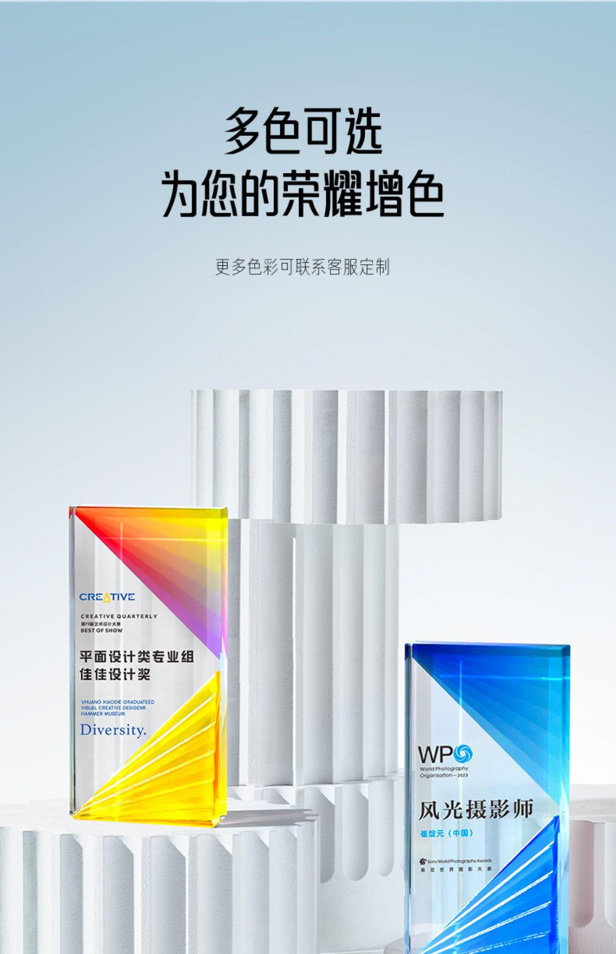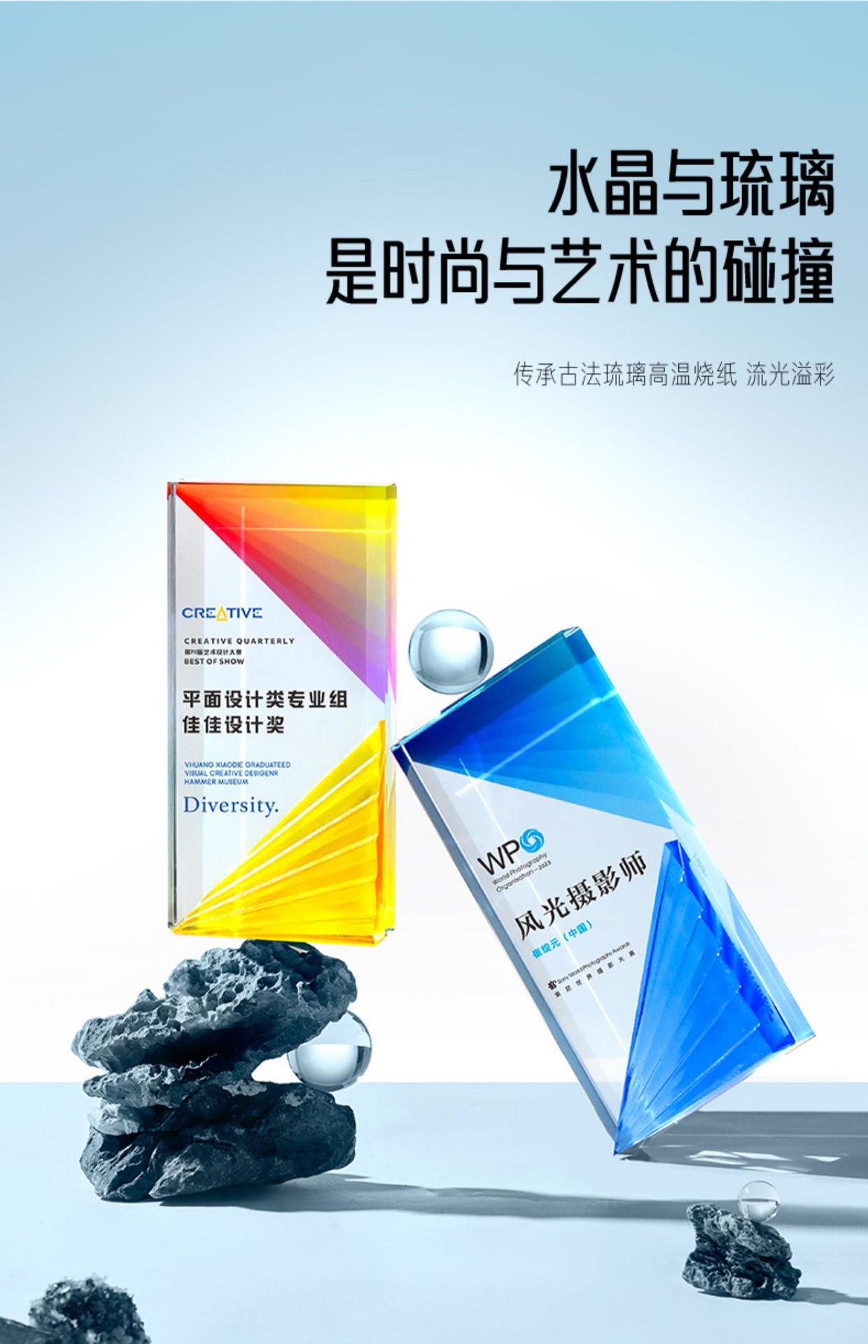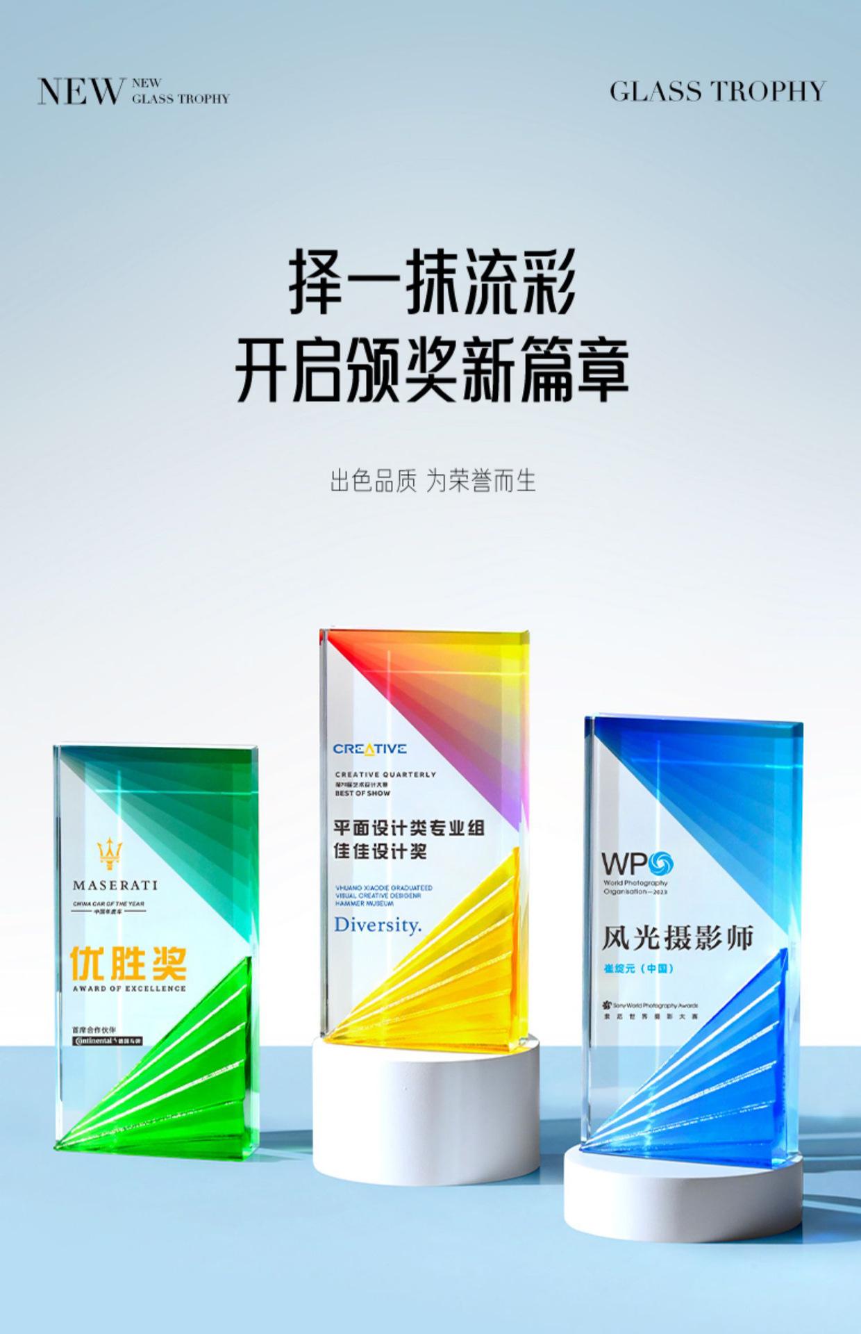 Producción de trofeos de cristal de la empresa Creative Glass, reunión anual, premio de honor al personal destacado, trofeo conmemorativo de aniversario, venta al por mayor