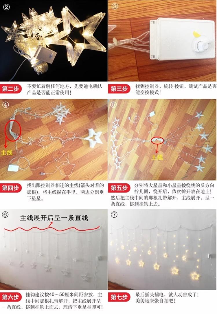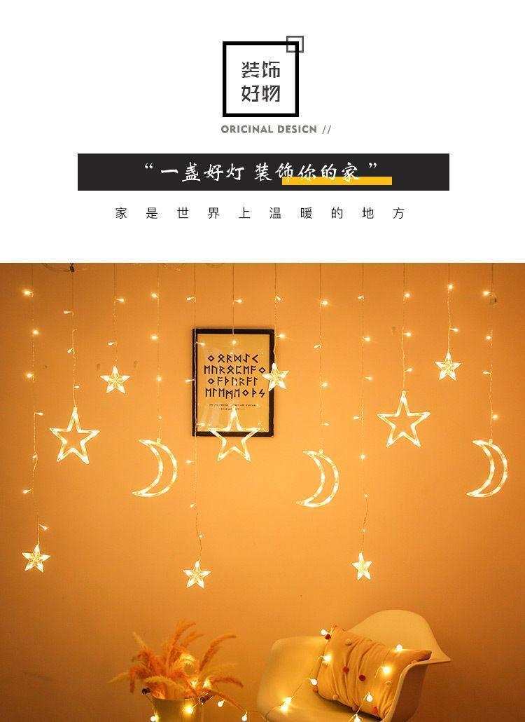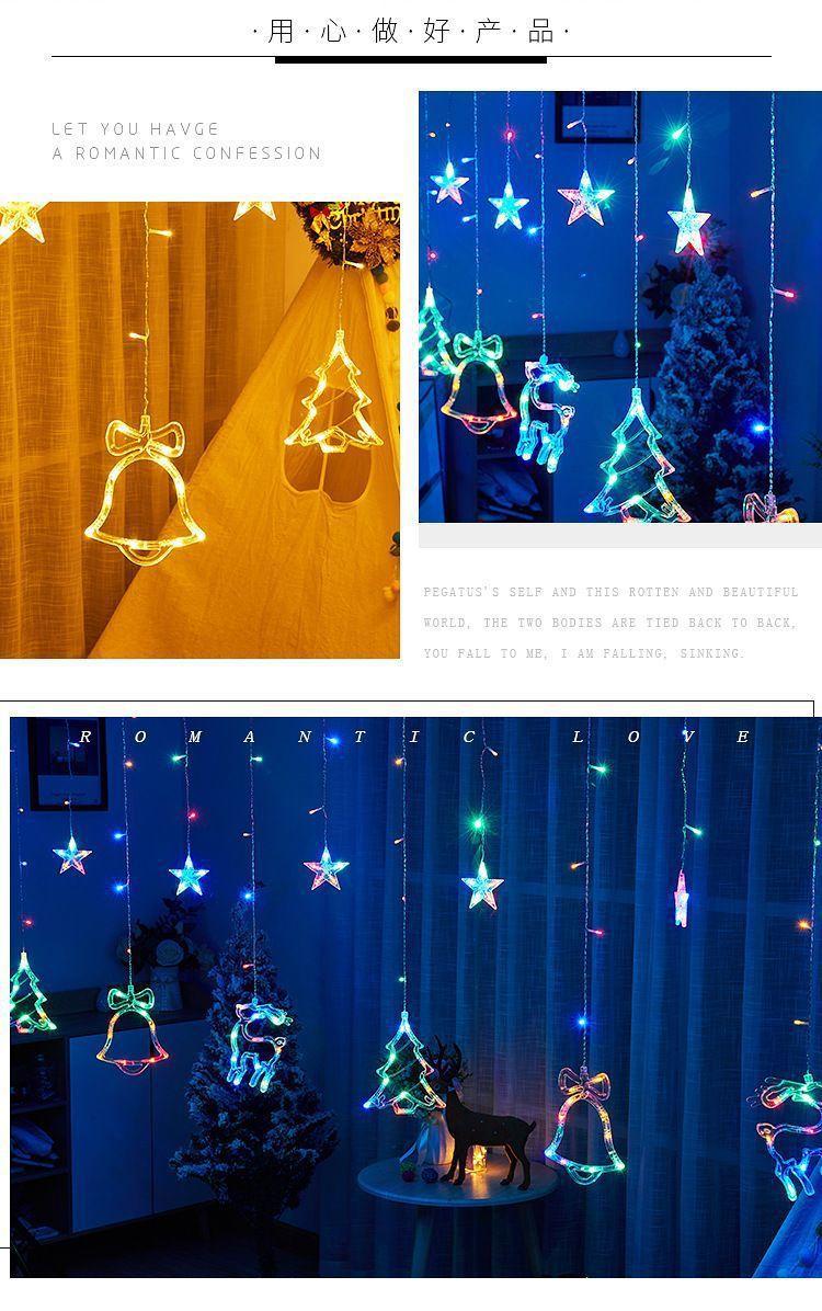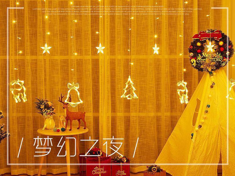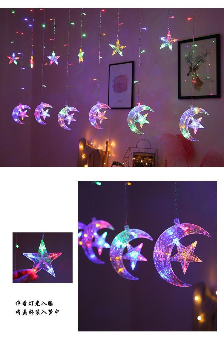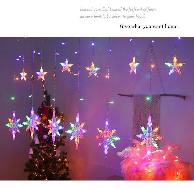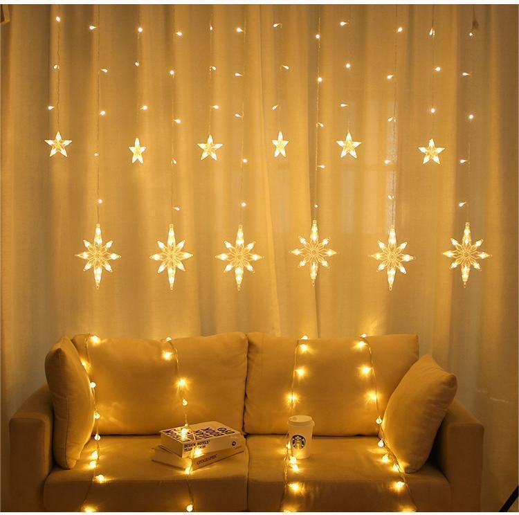 Cadena de luces LED de cinco puntas con forma de luna y estrella, novedad de 2025, cortina navideña con luces LED de copo de nieve, luces intermitentes al por mayor