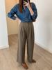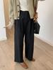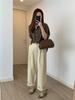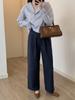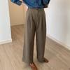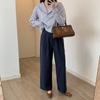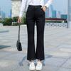 Pantalones casuales retro sencillos para mujer, otoño, nuevo estilo francés, cintura media elástica, pantalones rectos, cintura alta, pantalones adelgazantes sueltos