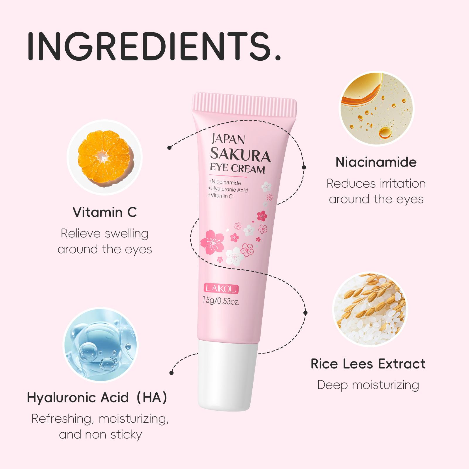 Lecko Crema para Ojos Esencia de Flor de Cerezo 15g Hidratante y Humectante Cuidado de la Piel Productos para el Cuidado de la Piel Empaque en Inglés Suministro Transfronterizo