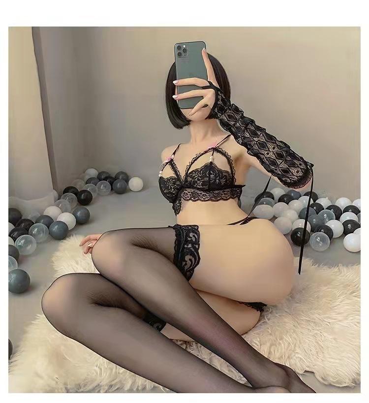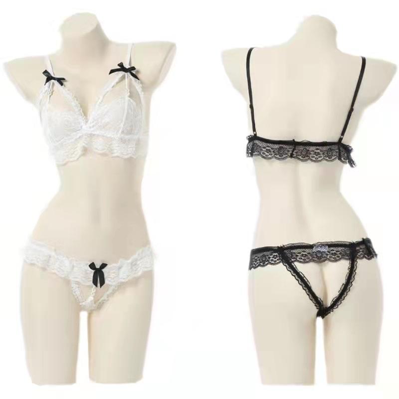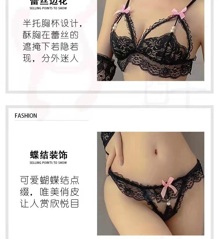 Lencería sexy de tres puntos para cama, tentación, pasión, encaje, traje abierto, pecho pequeño, transparente, caliente, puro deseo, pijama.
