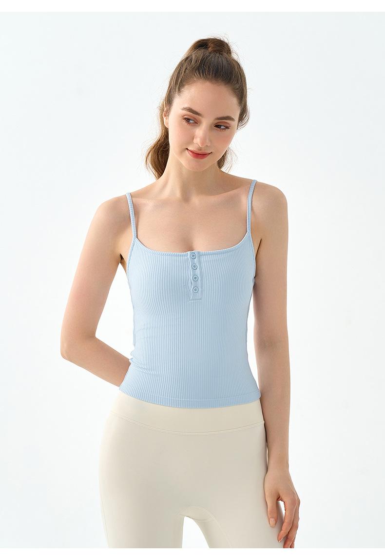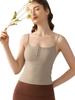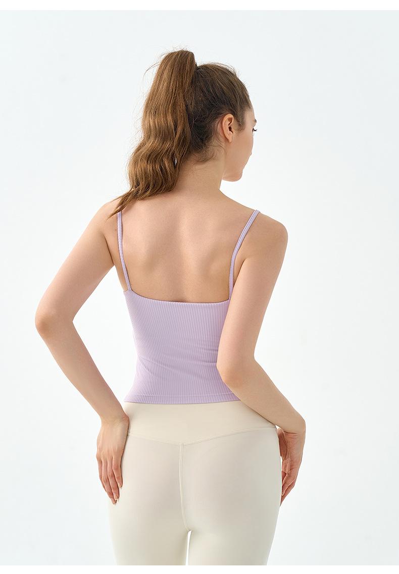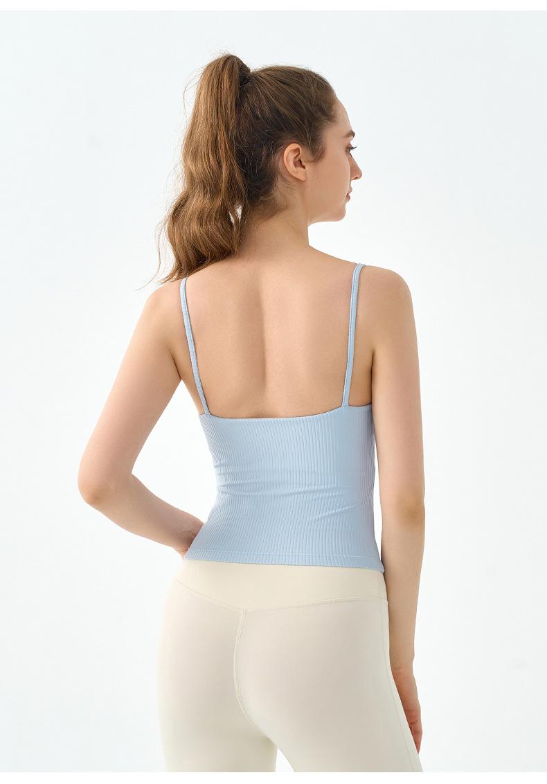 Sexy Chaleco de Yoga de Tirantes Finos con Cuello Cuadrado y Almohadilla en el Pecho para Mujer, Ropa Exterior, Espalda Hermosa, Corte Ajustado Adelgazante, Top de Yoga para Pilates
