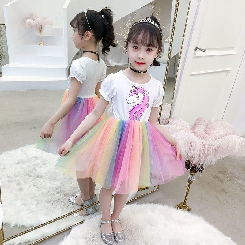 Ropa para niños, vestido de verano para niñas, falda arcoíris, 2025, nuevo, vestido de princesa para niñas medianas y grandes, vestido de moda para niñas pequeñas, tendencia