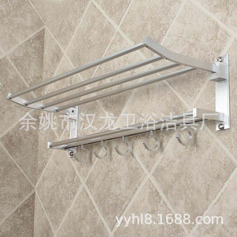 Toallero de aluminio de espacio engrosado para baño, toallero plegable móvil sin perforaciones para colgar en la pared, fabricante de fuentes