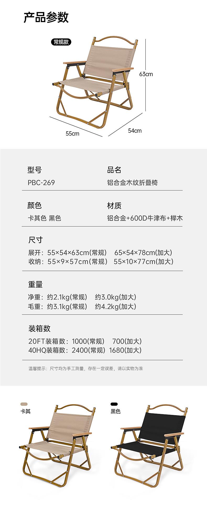Khaki - aluminum alloy regular folding chair [54*55*63cm], Khaki - aluminum alloy oversized folding chair [65*...