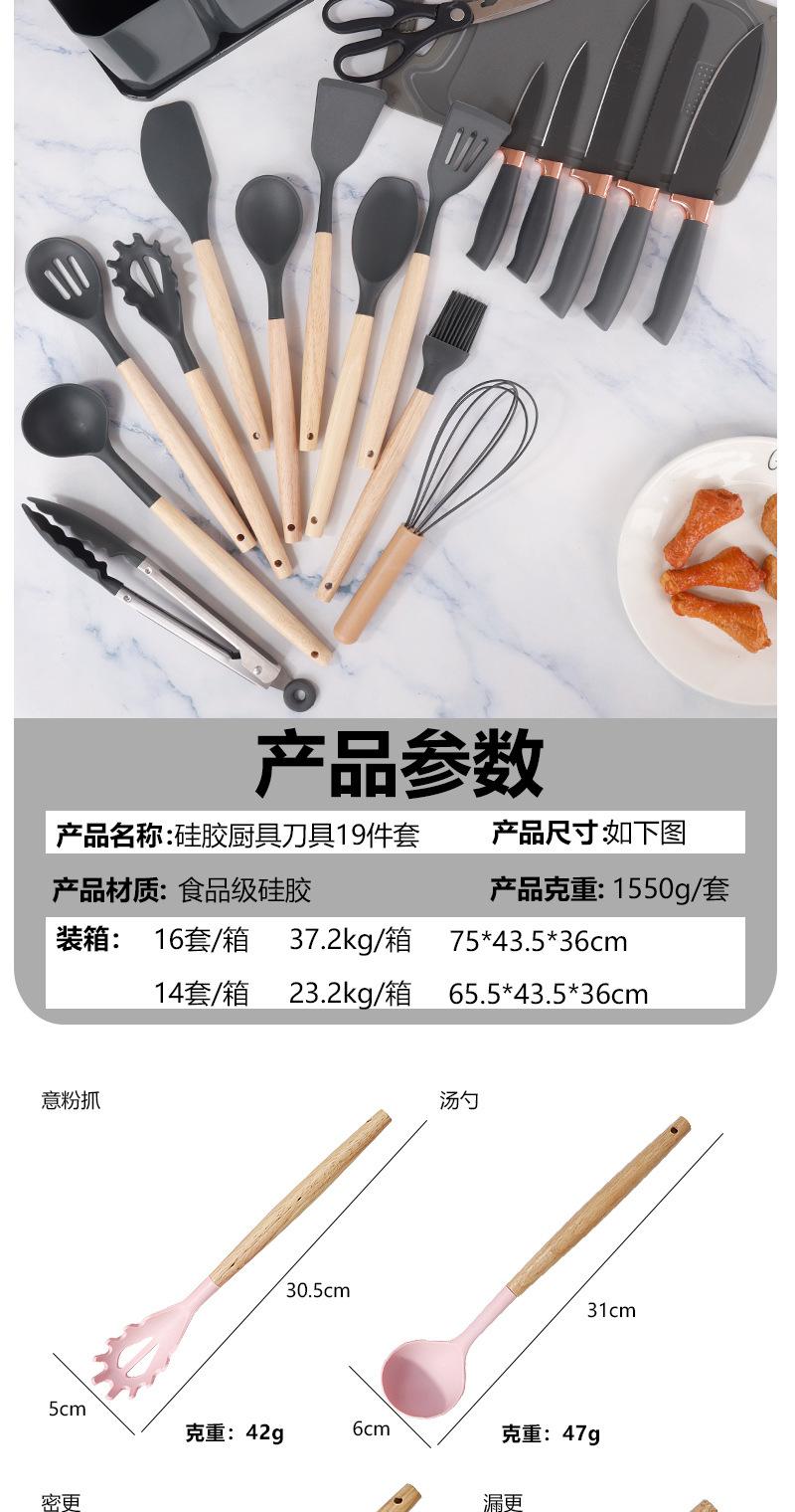 Juego de 19 espátulas y cucharas de silicona transfronterizas, antiadherentes, de silicona de grado alimenticio para el hogar