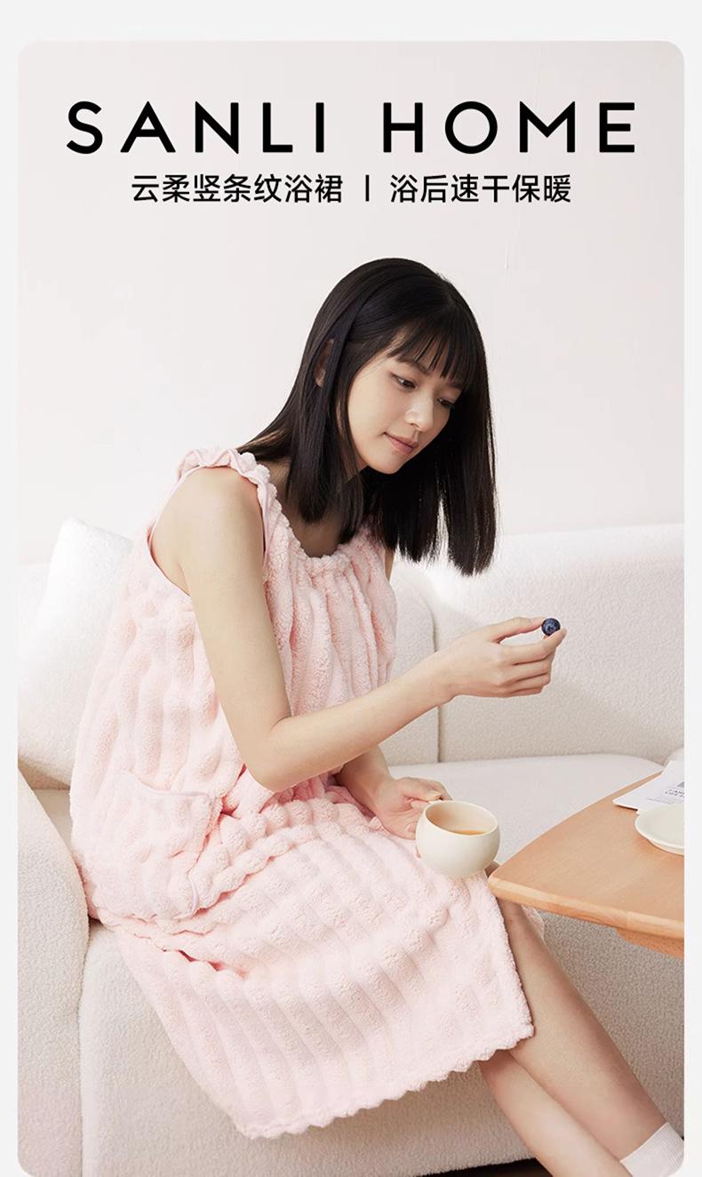Toalla Sanli, falda de baño a rayas tridimensionales, toalla de baño, bata de baño para adultos con forro polar coral de gran tamaño.
