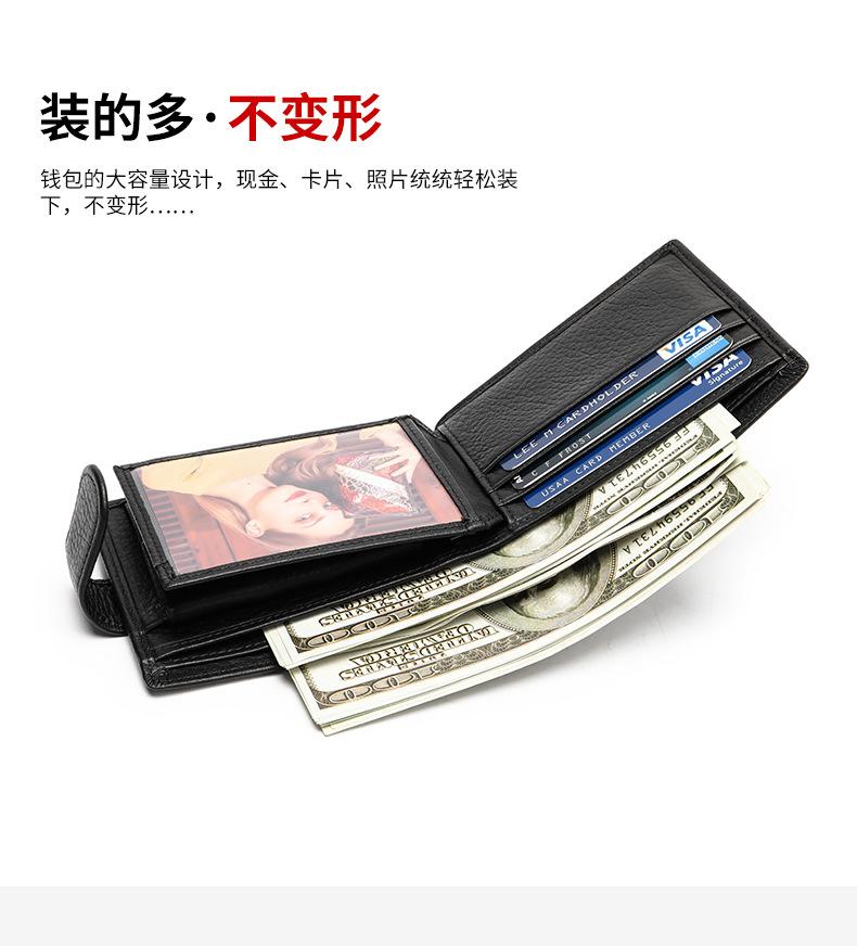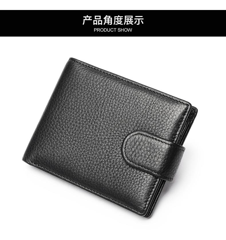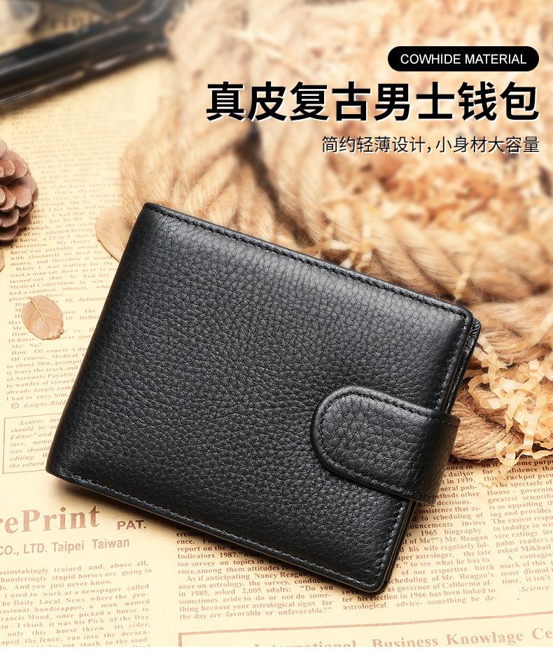 Nueva billetera de cuero genuino transfronteriza para hombre, primera capa de piel de vaca, venta al por mayor, versión corta de cuero, ver más ranura para tarjeta, bolsa para tarjetas, puesto de suministro