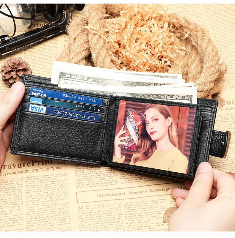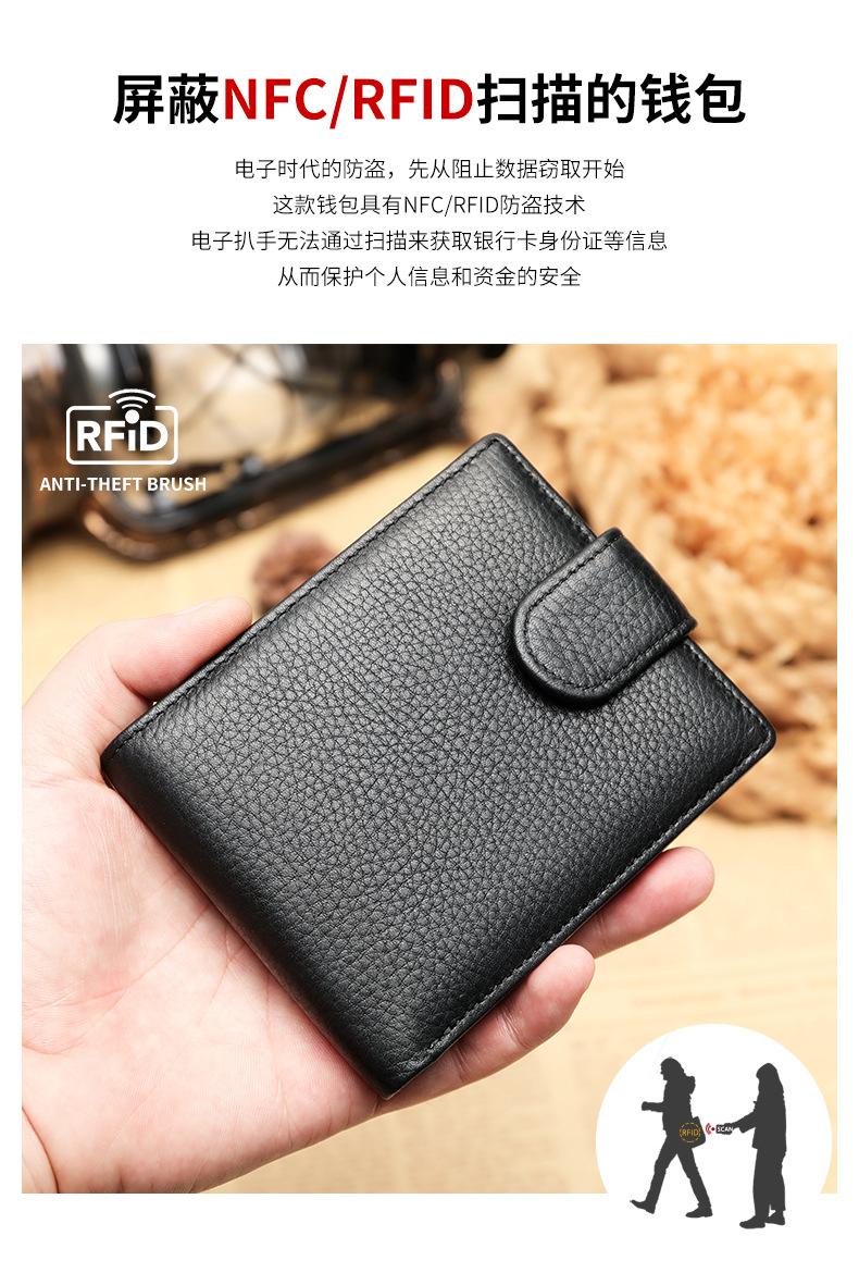 Cartera de hombre de piel auténtica antirrobo RFID, corta, de primera capa, de piel de vacuno, con ranura para múltiples tarjetas, 20% de descuento en carteras y monederos para hombre.