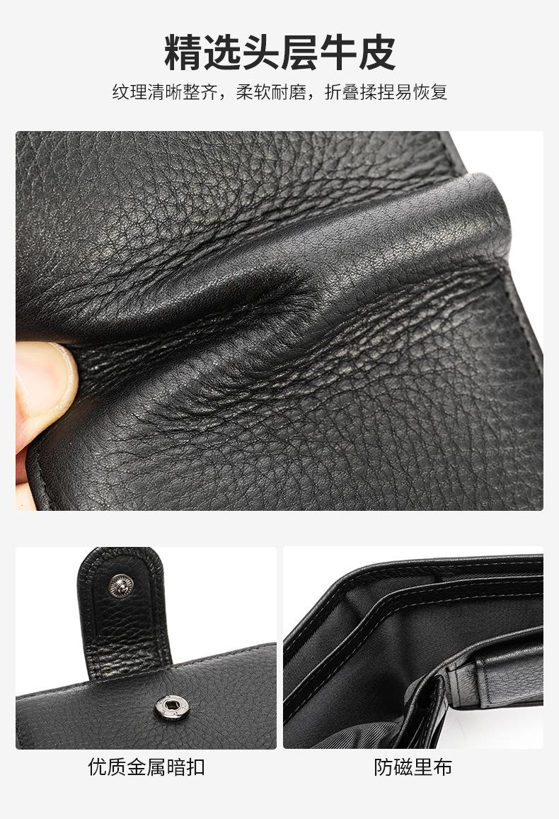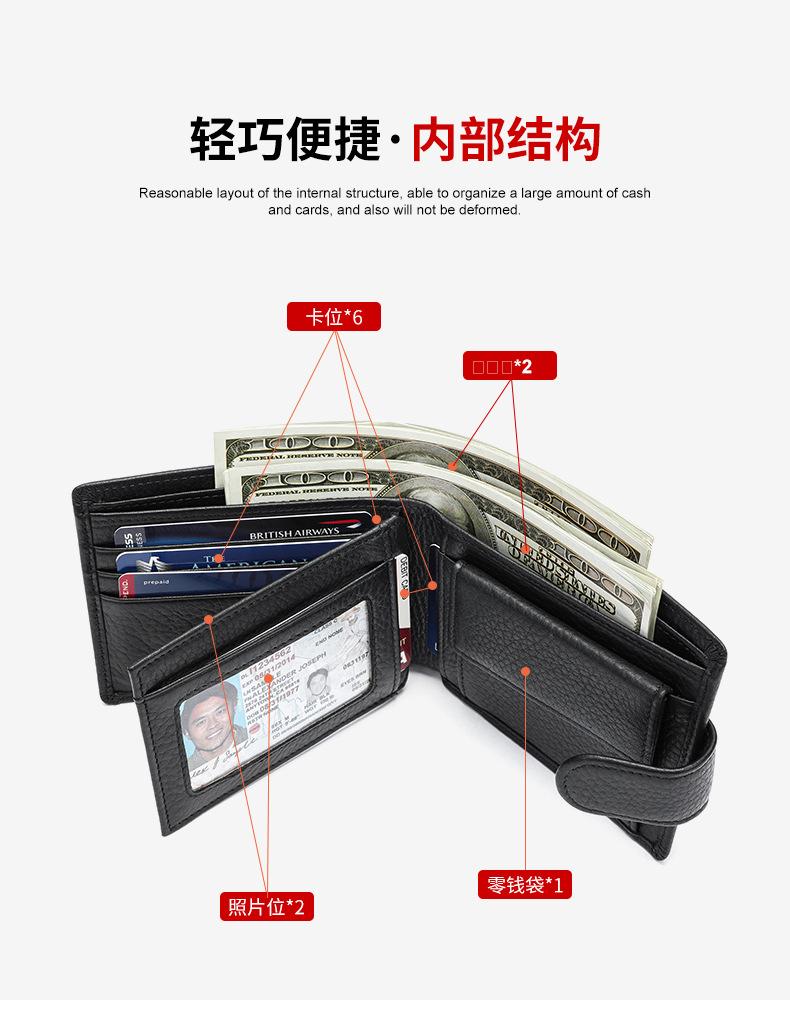 Cartera de piel de vaca hecha a mano para hombre, primera capa de cuero genuino, corta, antirrobo, con cepillo, gran capacidad, moderna, de comercio exterior, al por mayor