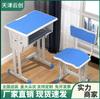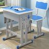1 blue-edged single double-column desk and chair, 2 gray edge single double column desks and chairs, 3 blue an...