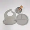 Juego de vajilla de silicona para niños transfronterizos, cuenco para comida de bebé, babero, tenedor, cuchara, suministros maternos e infantiles, juego de cinco piezas al por mayor