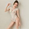 Comercio exterior europeo y americano lencería sexy encaje sexy de una pieza perspectiva de tres puntos traje de tentación abierto pijama de talla grande 1223