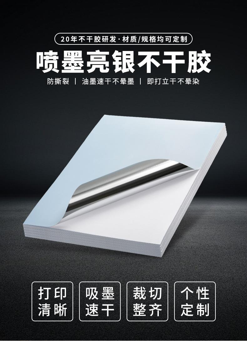 Adhesivo para impresión de inyección de tinta PET adhesivo plateado brillante papel de impresión a4 etiqueta plateada adhesiva impresión en rollo para inyección de tinta