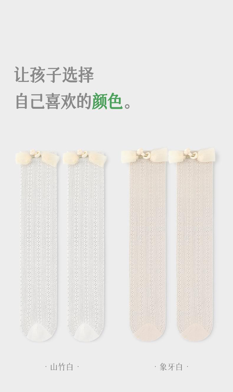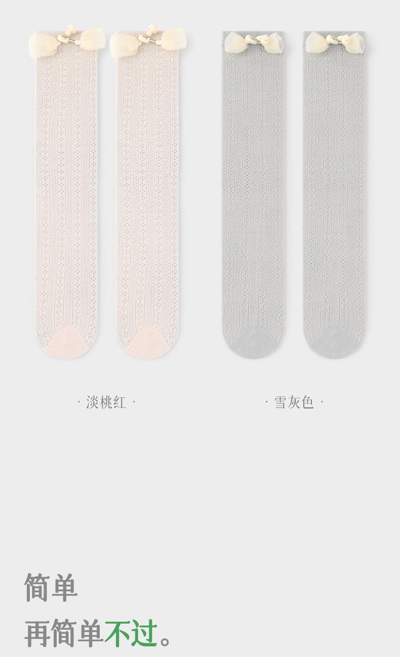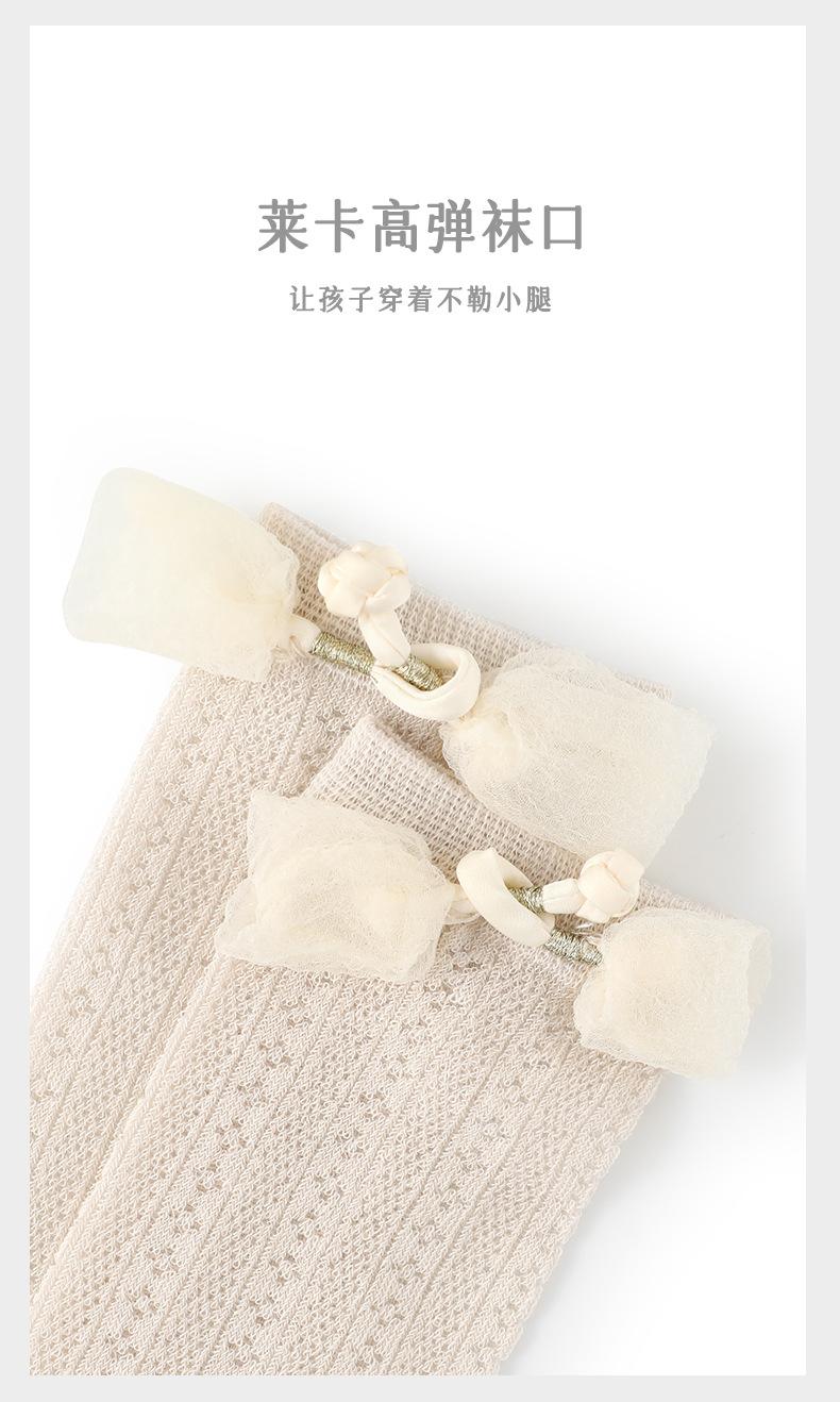 Calcetines de verano para niños, finos, de malla, transpirables, sin talón, hasta la pantorrilla, con lazo, para niñas, de longitud media
