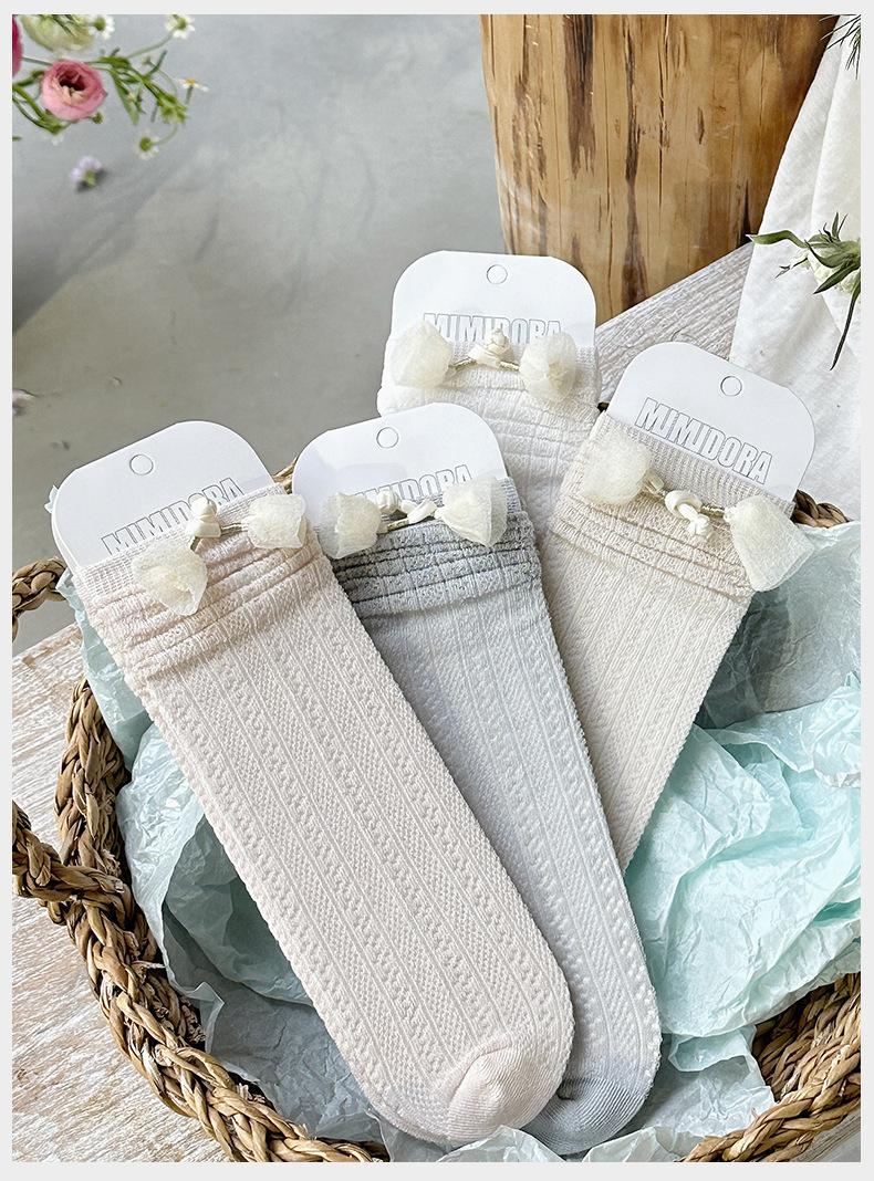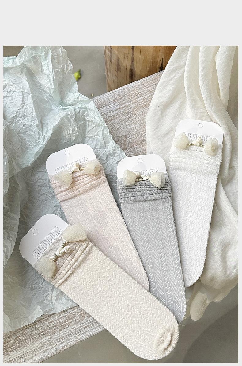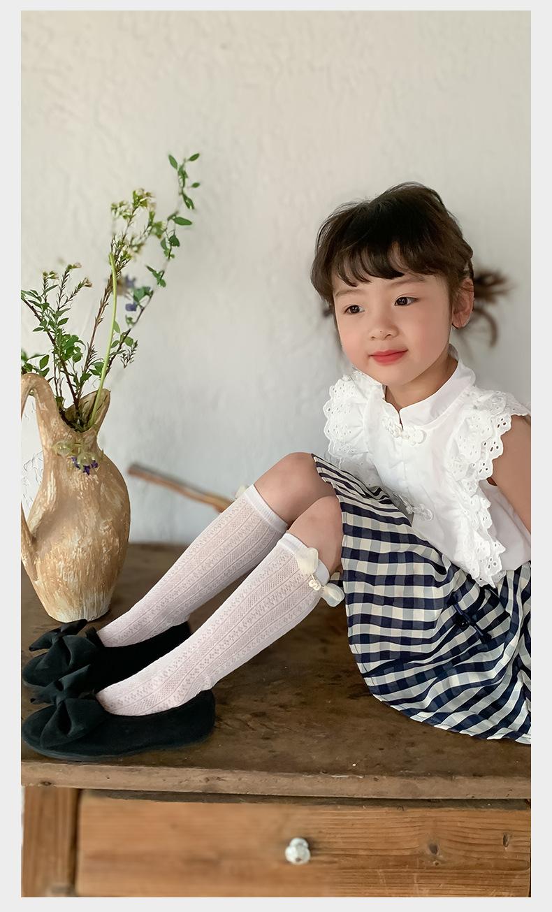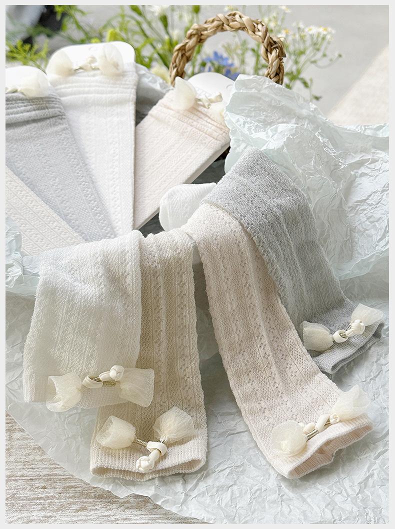 Calcetines de verano para niños, finos, de malla, transpirables, sin talón, hasta la pantorrilla, con lazo, para niñas, de longitud media