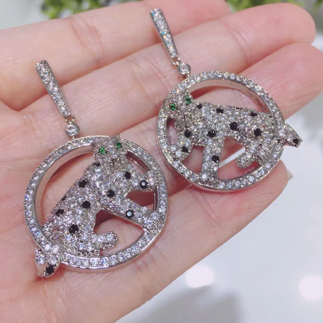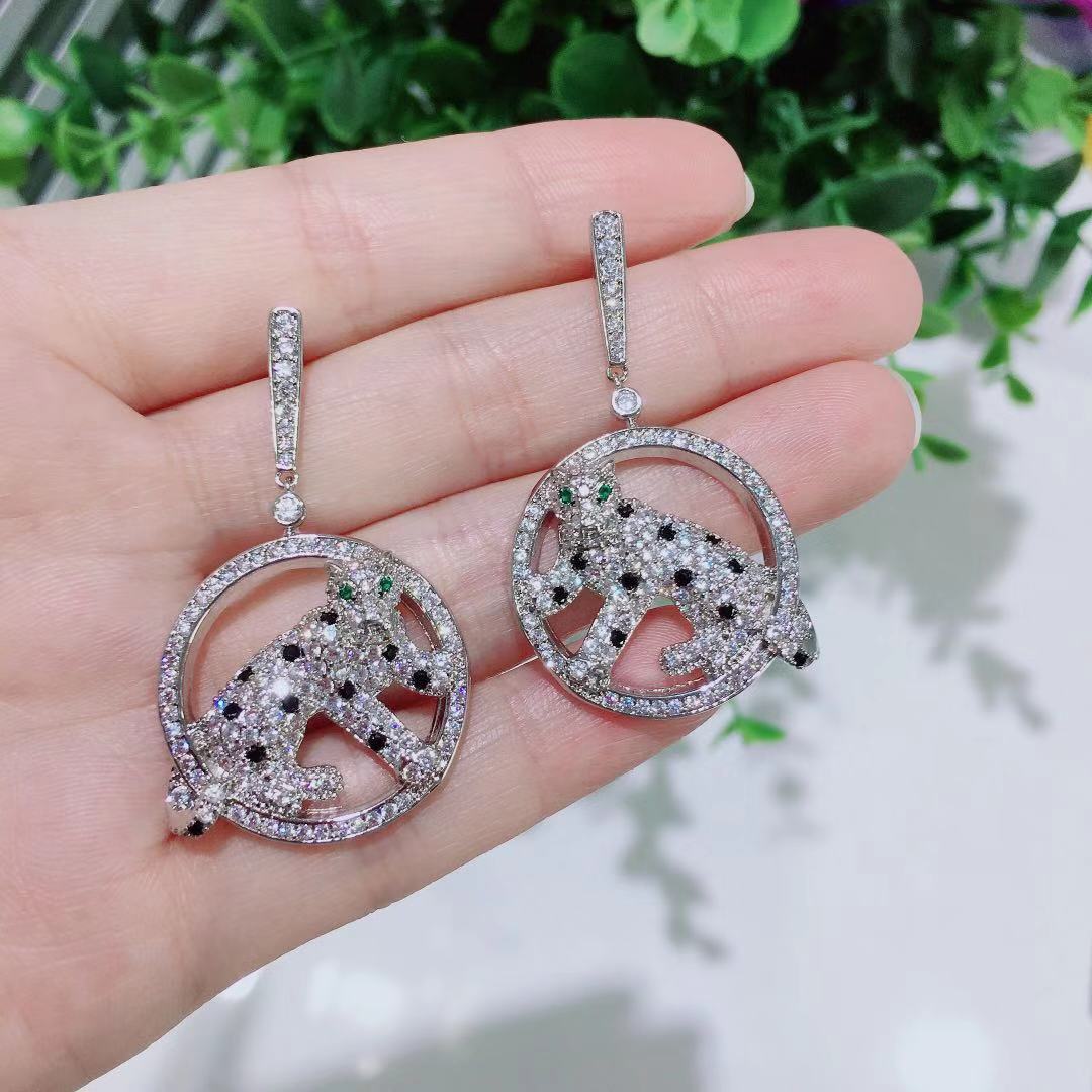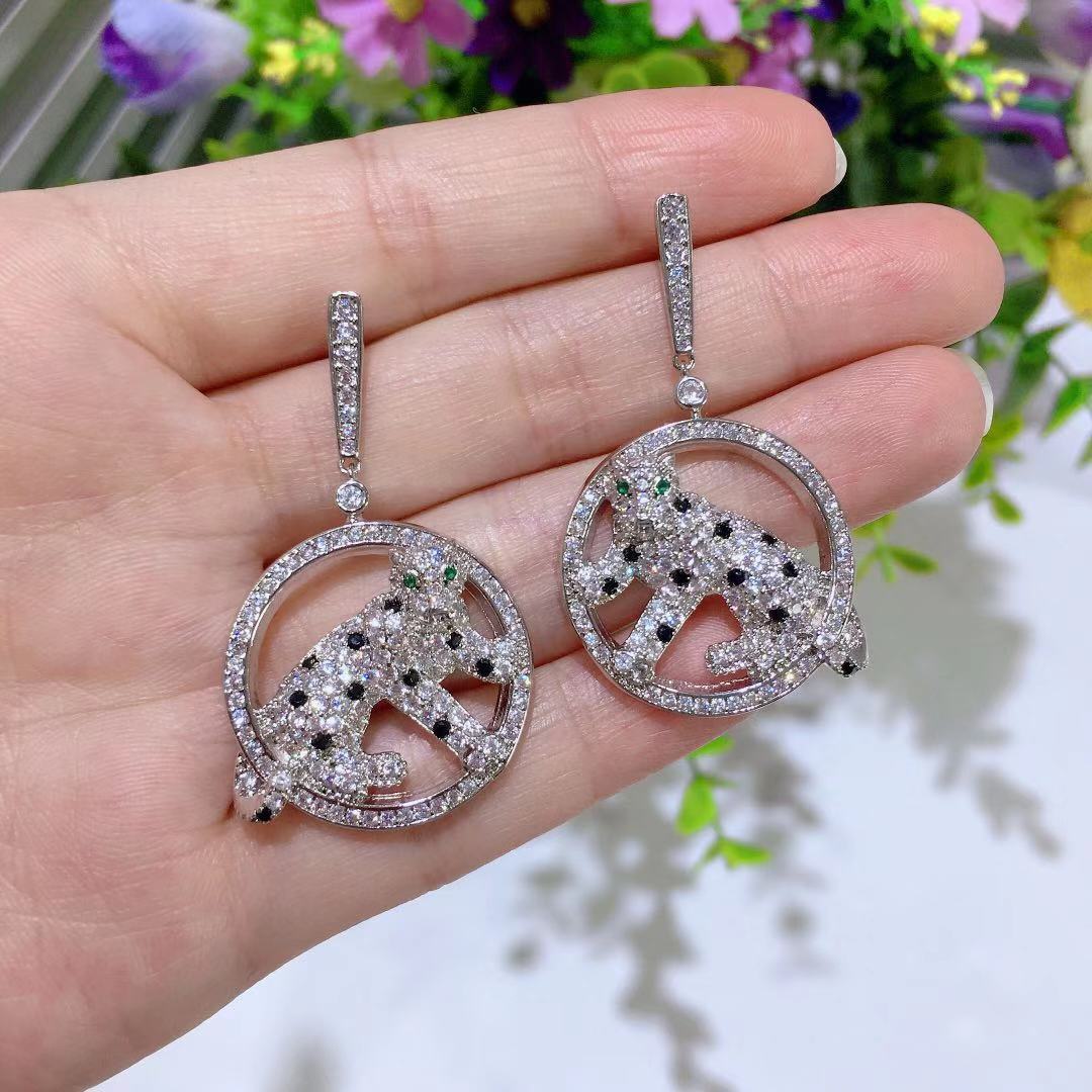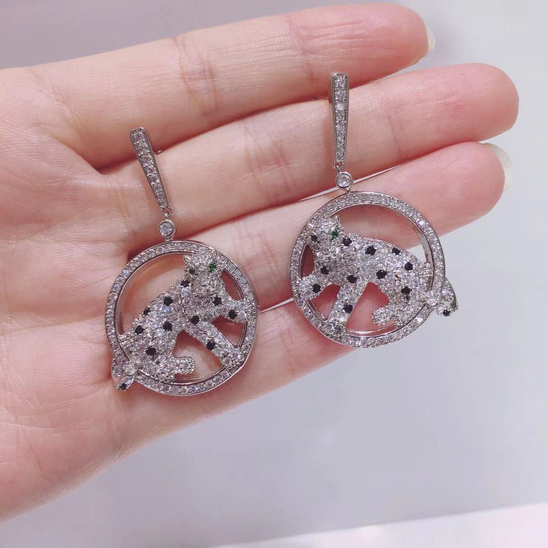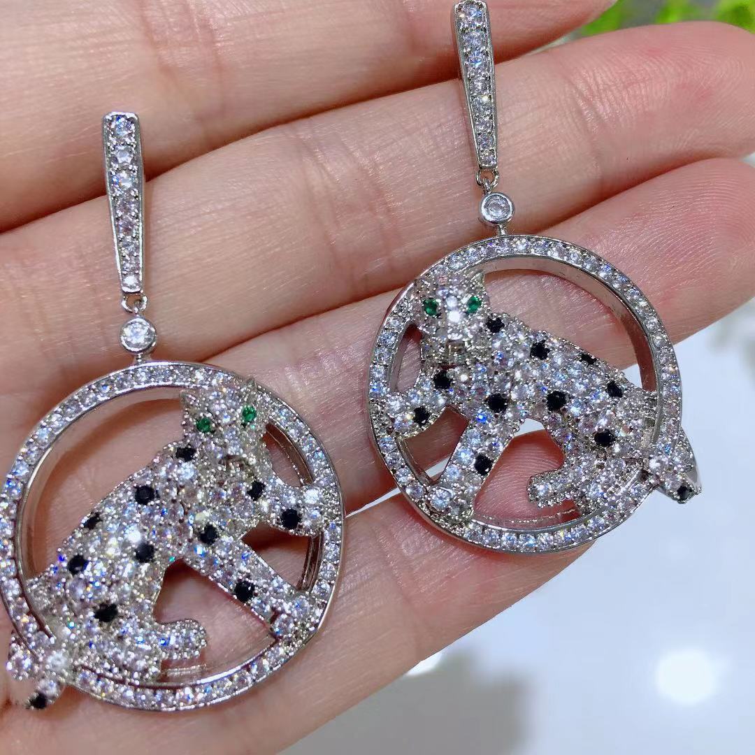 Hermosos pendientes de gota de aceite con forma de círculo de leopardo punteado retro europeo y americano, pendientes de cena, moda coreana, circonita ligera de lujo, aguja de plata