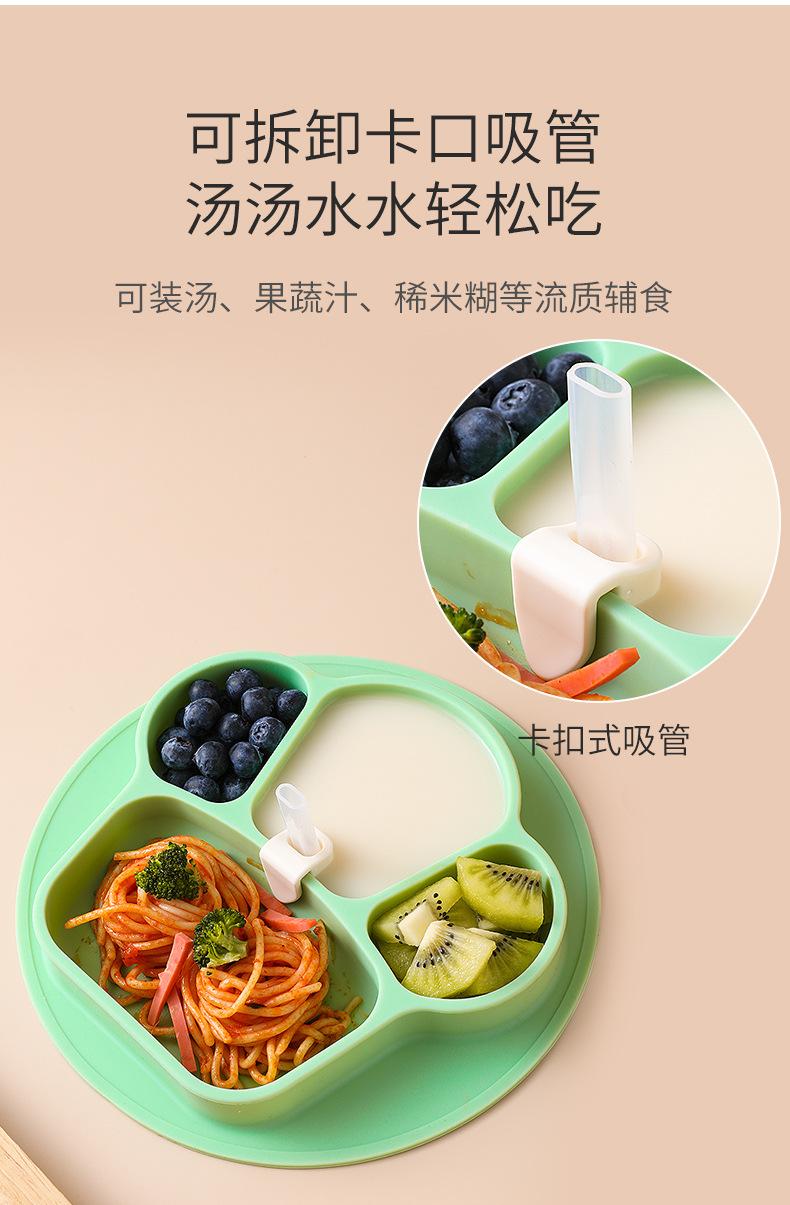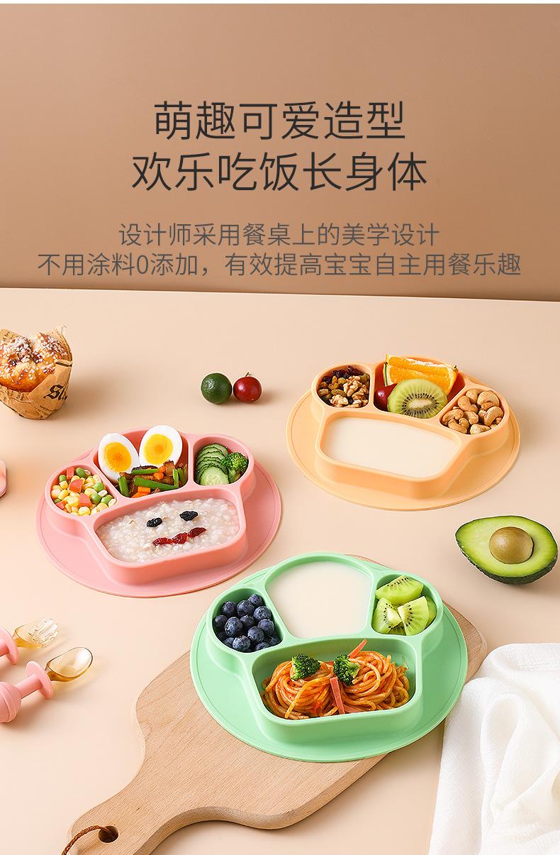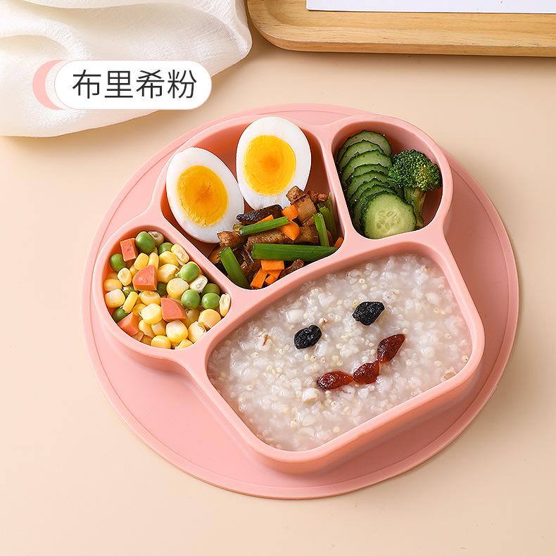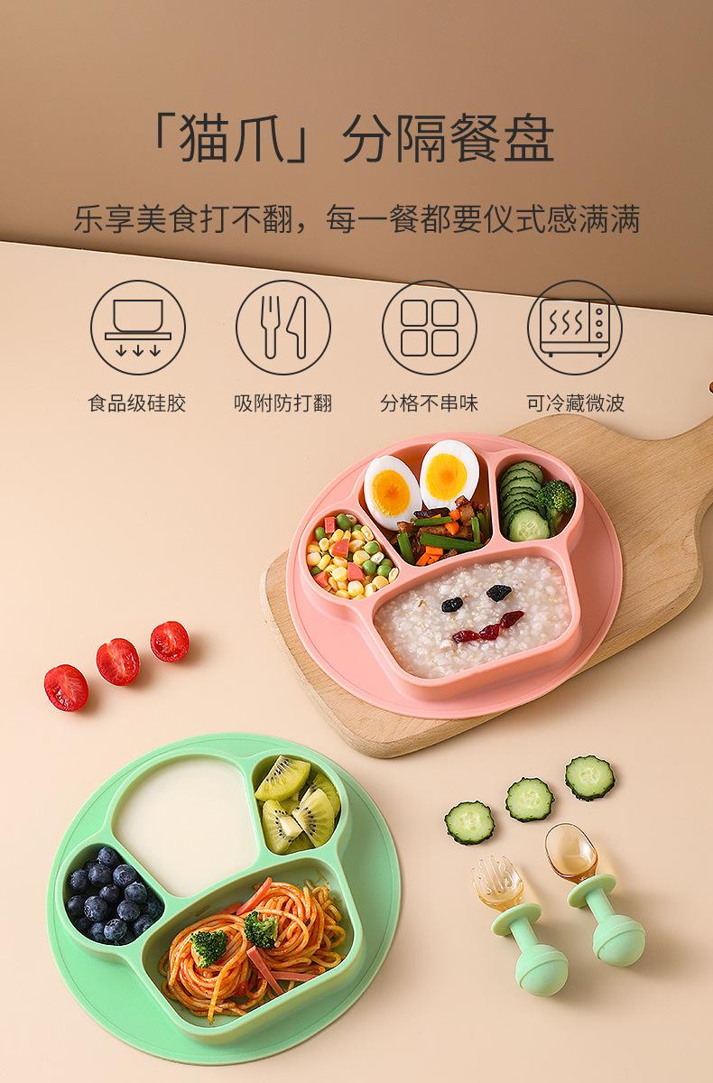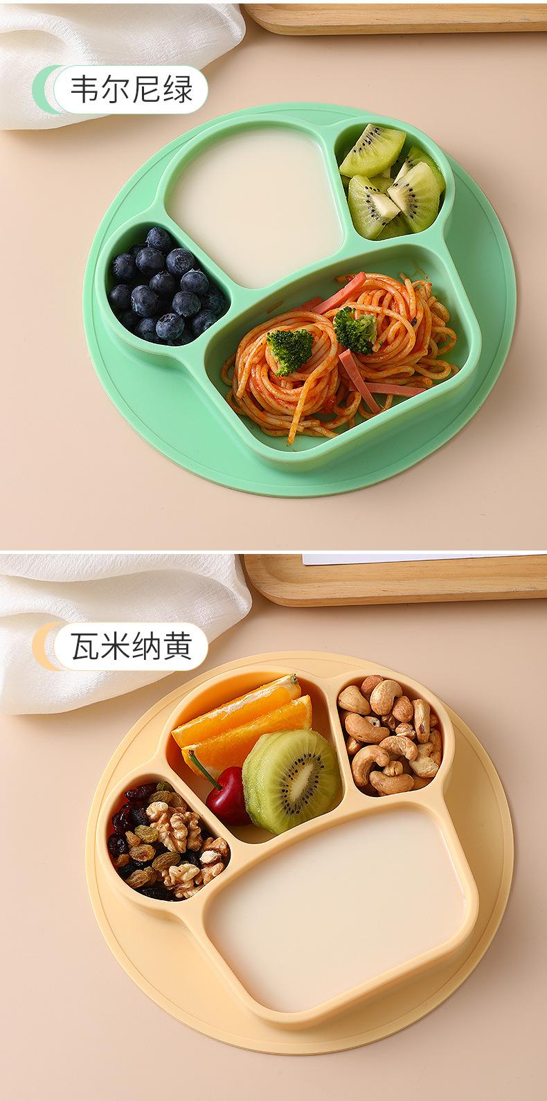 Plato de cena integrado para bebés, tazón de silicona con ventosa para niños, juego de vajilla con plato dividido para entrenamiento de comidas para niños