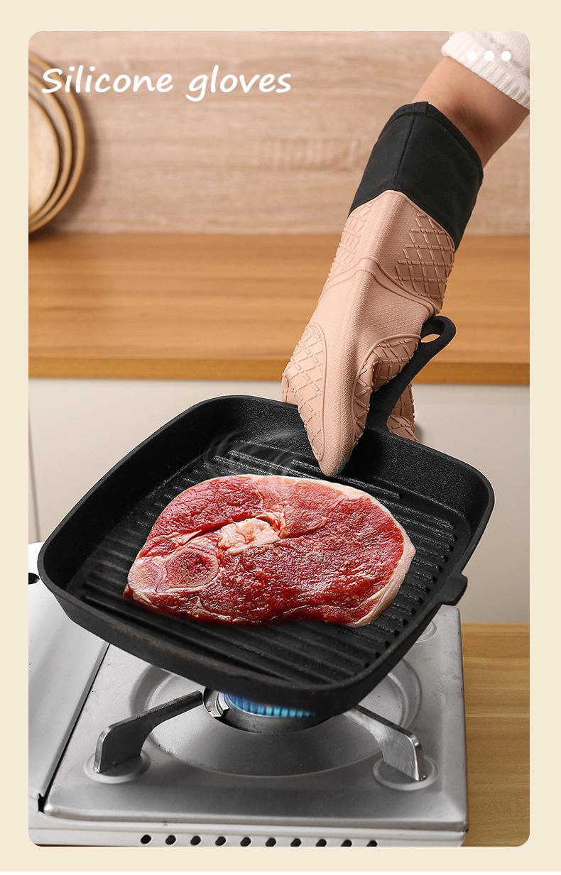 Guantes Aislantes, Guantes de Cocina Aislantes para Horno Antiescaldantes, Boca Plana, Guantes Domésticos de Silicona Gruesa Resistentes a Altas Temperaturas para Horno Microondas
