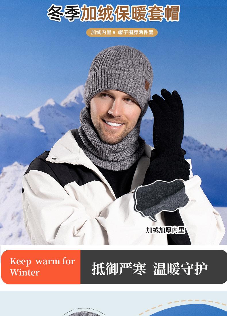 9604 Gorro y bufanda gruesos con forro polar de invierno, traje de lana cálido a prueba de frío, gorro de punto para hombre transfronterizo europeo y americano