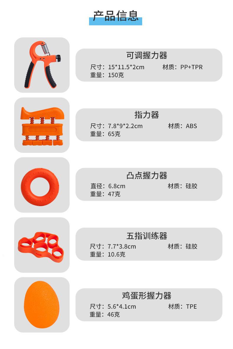 Equipo de fitness ajustable para conteo, agarre para dedos, entrenamiento de rehabilitación, entrenador de muñeca, agarre, traje de cinco piezas