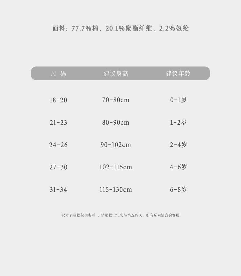 18-20 height 70-80cm suitable for 0-1 years old, 21-23 Height 80-90cm suitable for 1-2 years old, 24-26 Height...