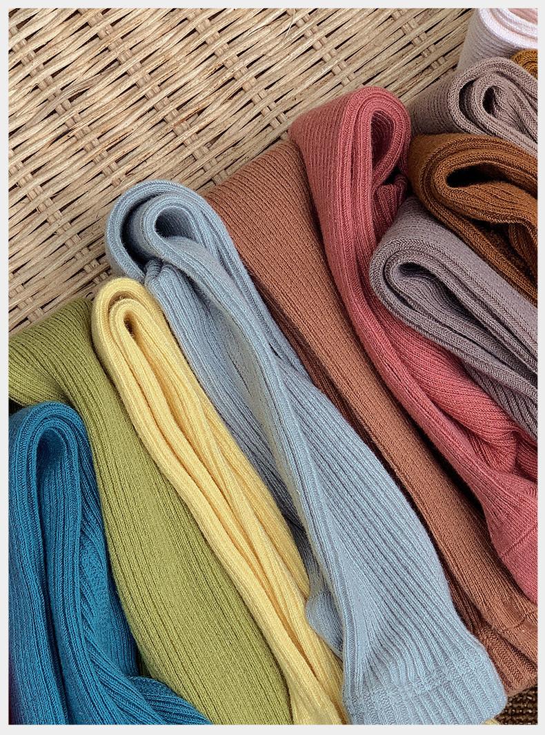 Medias de primavera para niñas, estilo occidental, color caramelo, calcetines de una pieza de algodón peinado para bebés, primavera y otoño