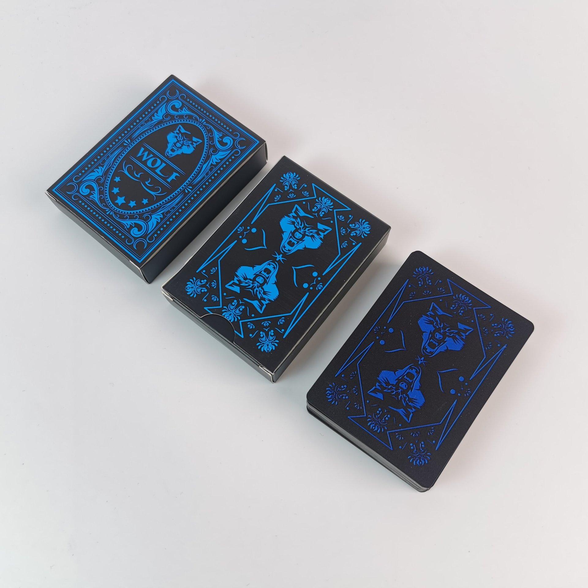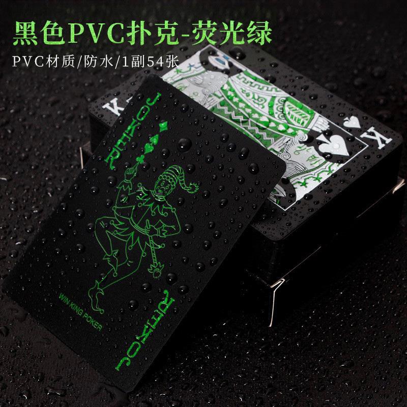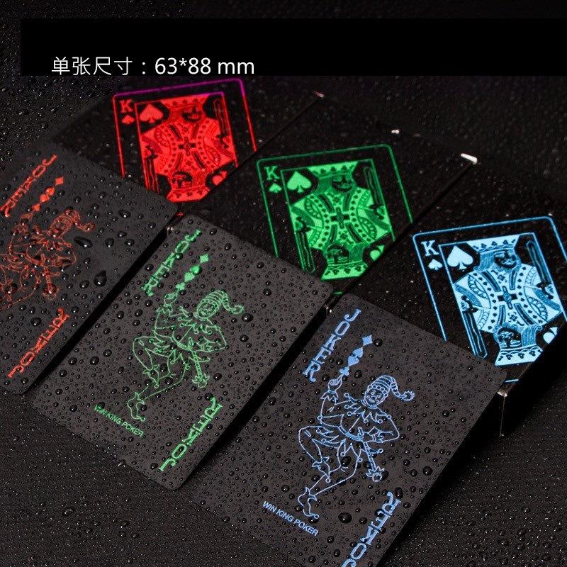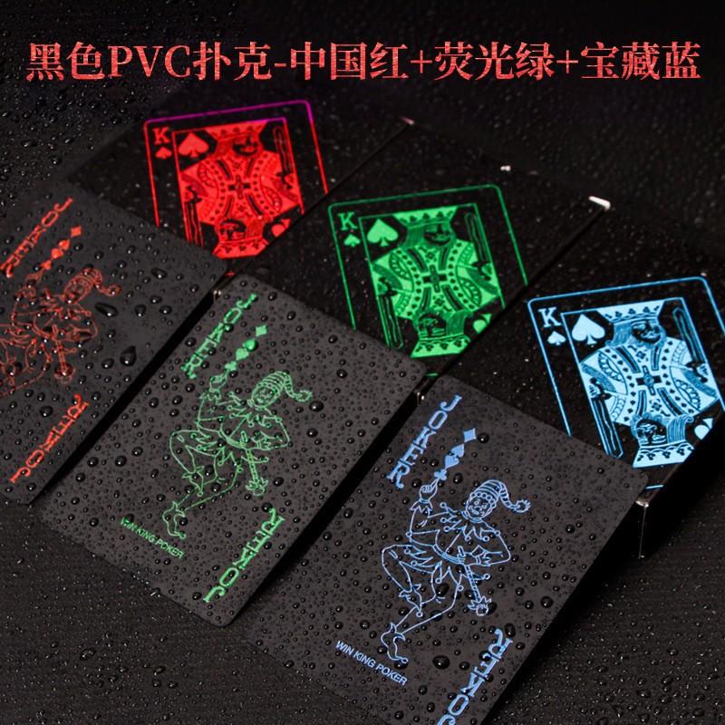 Naipes de plástico negro creativos al por mayor en stock, naipes de póker impermeables de PVC de color, en stock al por mayor