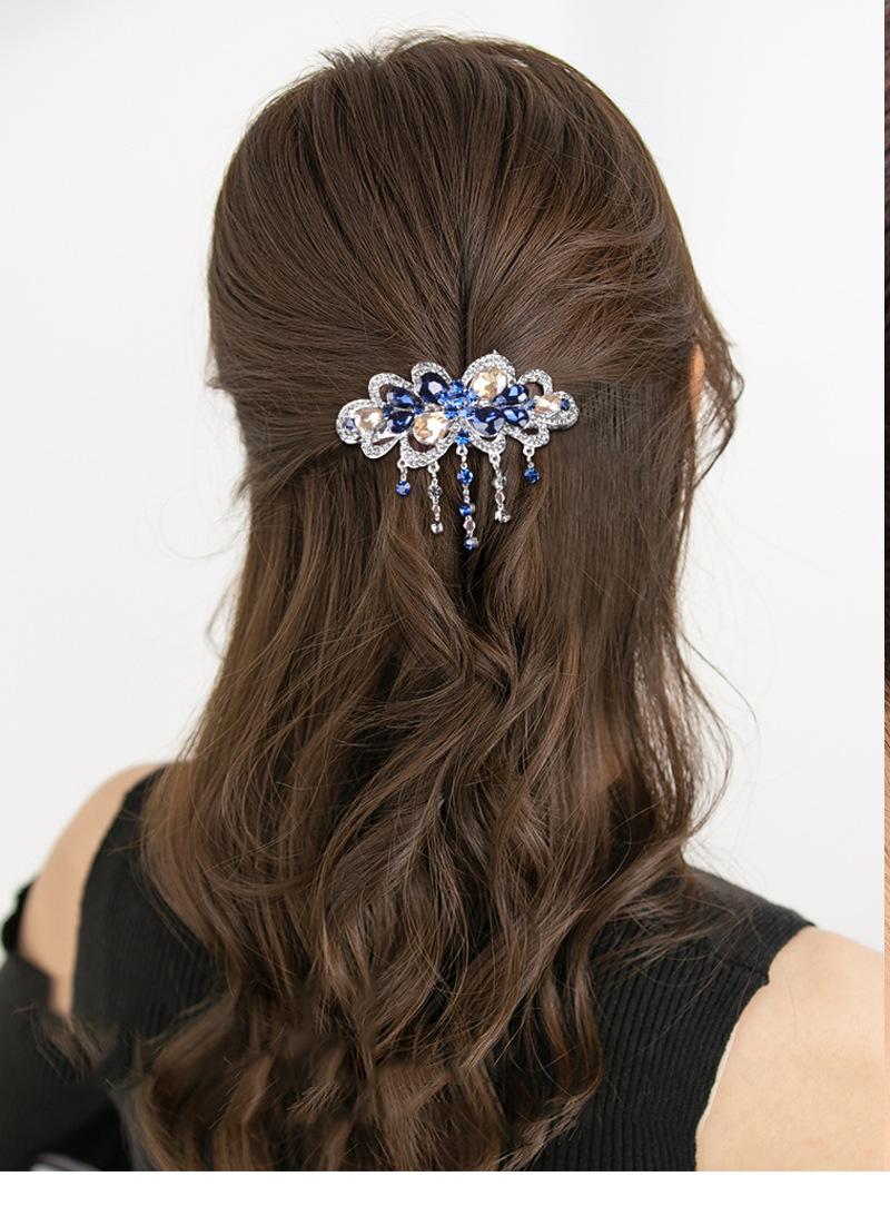 Horquilla con borla grande y resorte, elegante horquilla retro para la parte superior de la cabeza para mamá, accesorios coreanos de alta gama para el cabello.