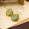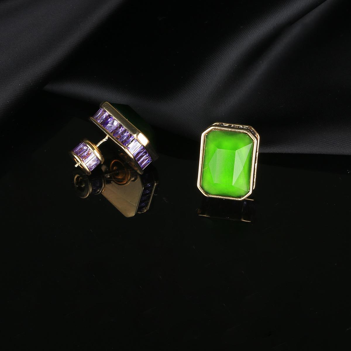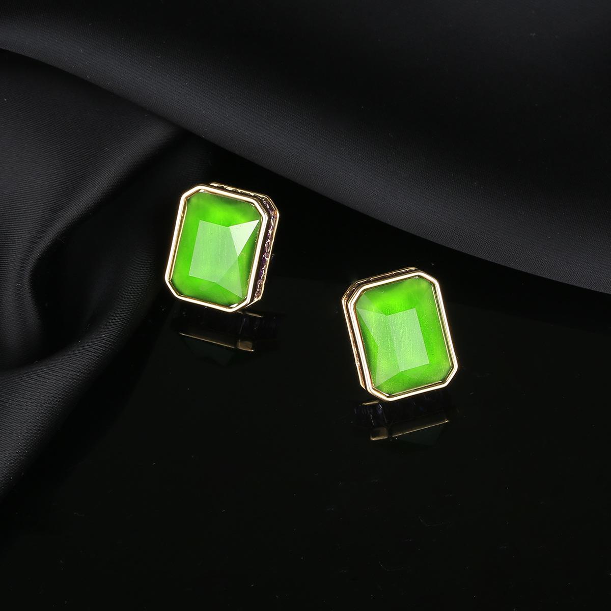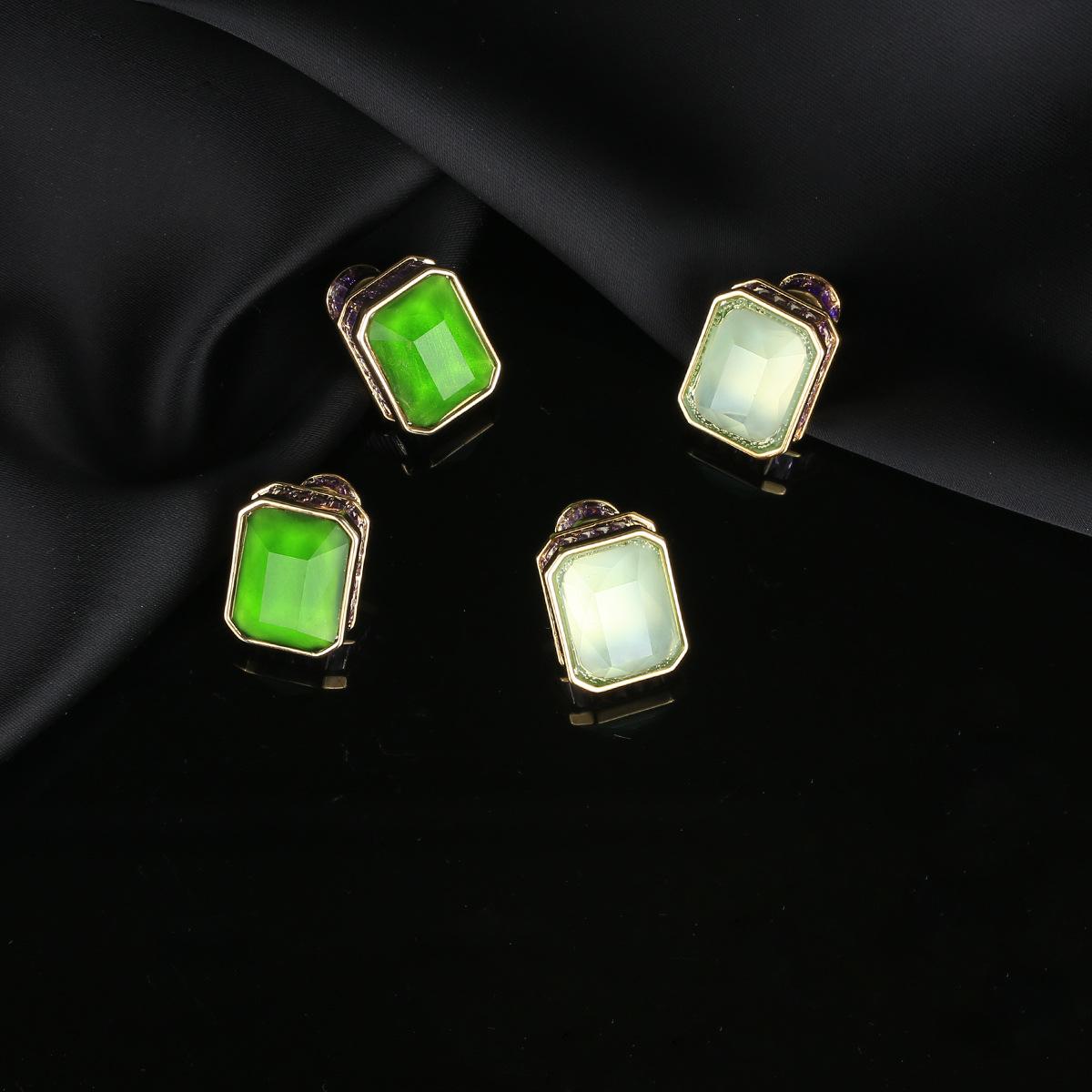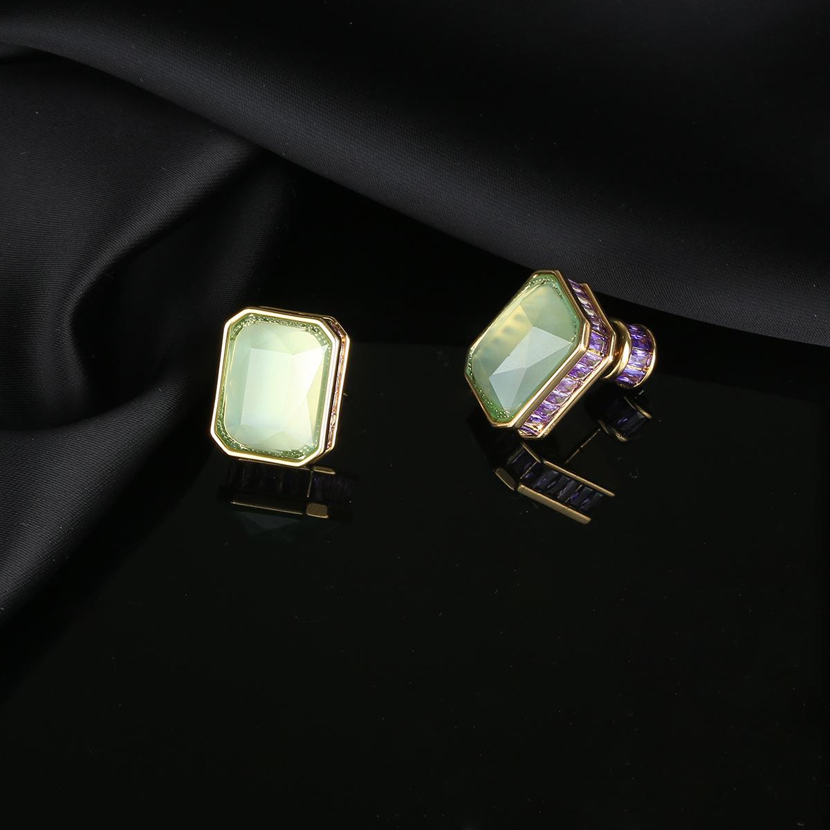 Olive yellow zircon S925 Silver Needle, Light blue zircon S925 Silver Needle