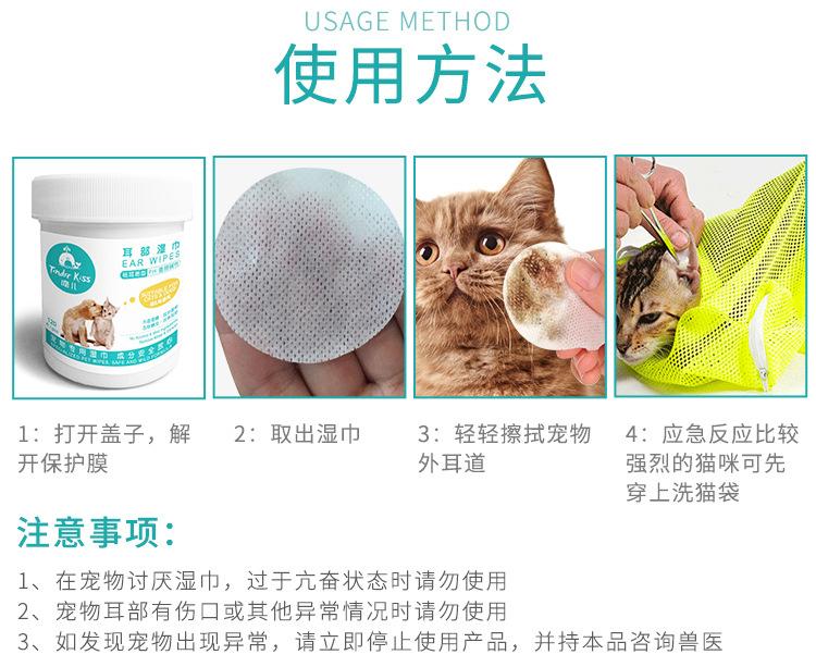 Toallitas Húmedas para Oídos de Mascotas para Gatos y Perros, Toallitas Limpiadoras para la Eliminación del Cerumen, Suministros para la Limpieza de Oídos, 120 Piezas, Procesadas y Personalizadas