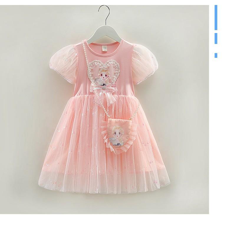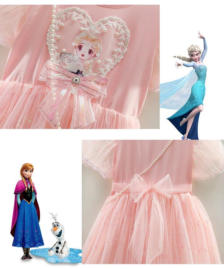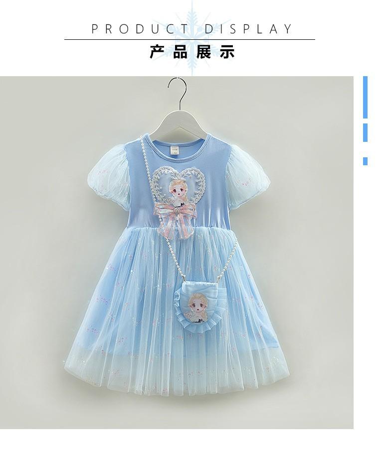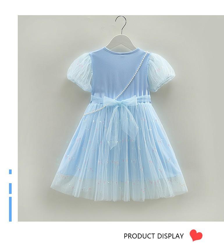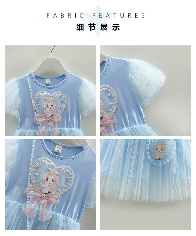 Vestido de princesa Frozen de verano para niñas 2024, nuevo vestido infantil de Elsa, estilo occidental, de manga corta, para cumpleaños.