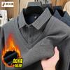 Camisa suéter para hombre otoño e invierno falso dos piezas de punto casual de negocios forro superior cálido base camisa línea