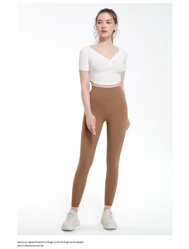 Compra Pantalones de yoga de cintura alta con realce de cadera transfronterizos europeos y americanos para mujer, pantalones ajustados y elásticos para correr, pantalones de pilates para fitness desnudos. al por mayor en Joom.pro
