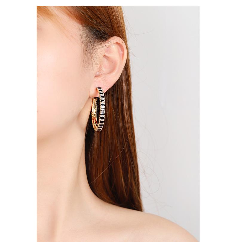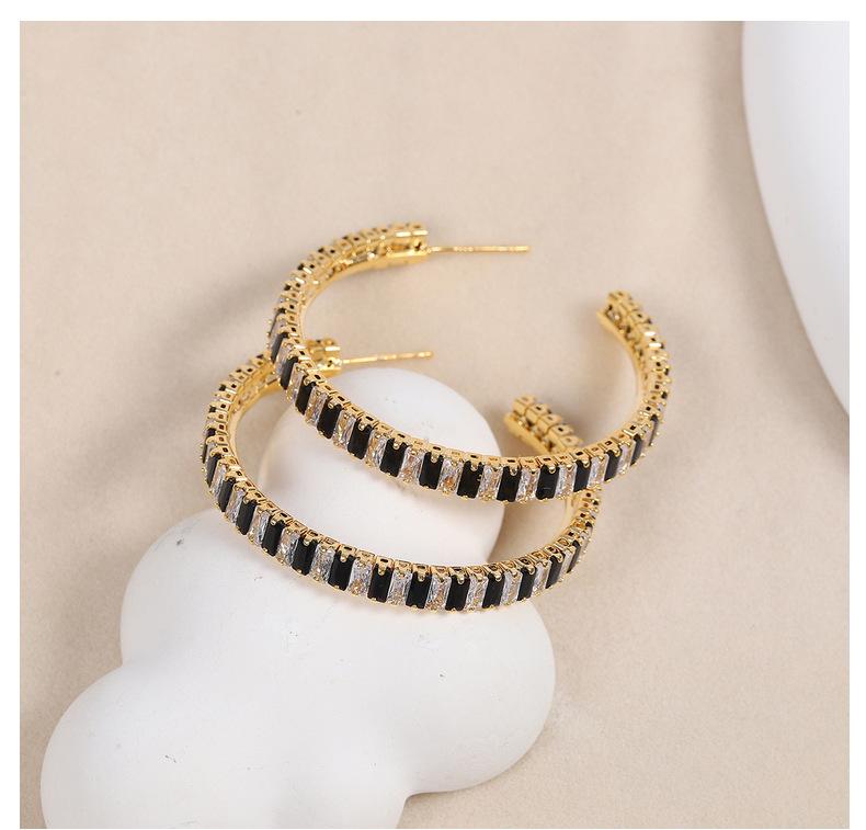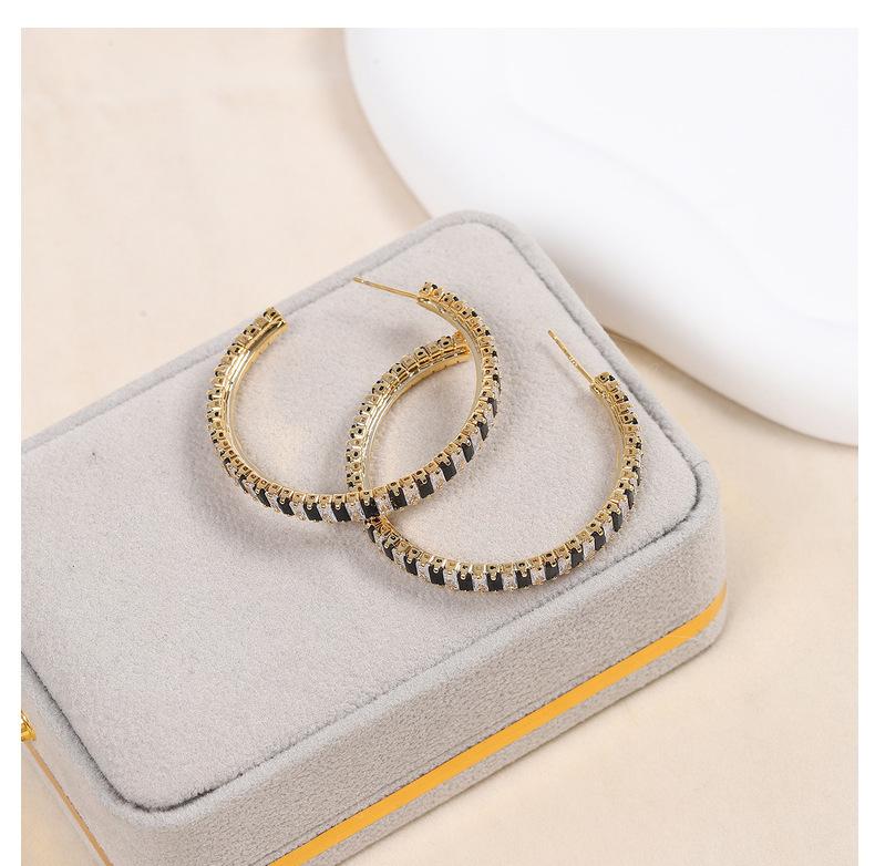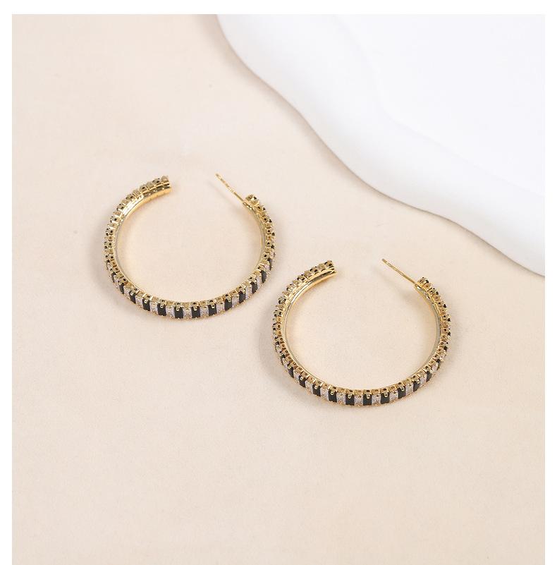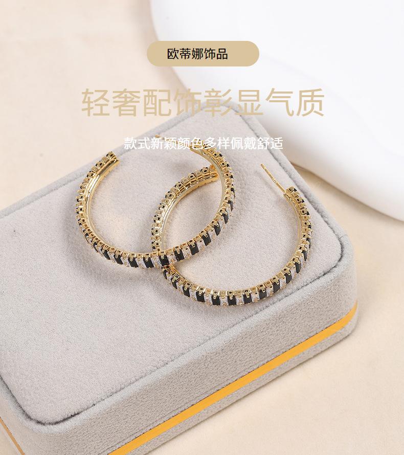 Pendientes nuevos y modernos con forma de circón con costuras en blanco y negro y gran círculo, joyería Yiwu al por mayor