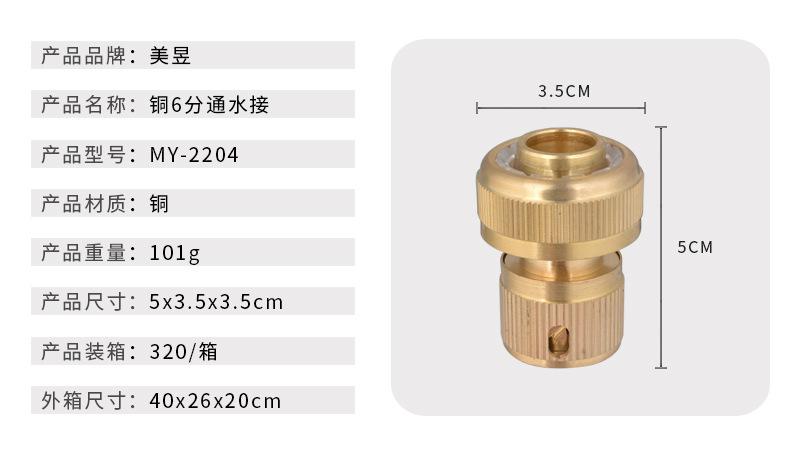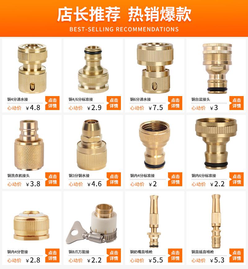 Conector rápido de tubería de distribución de agua de 6 piezas, tipo boquilla, para pistola de agua de lavado de automóviles, accesorios especiales, todo de cobre, conexión rápida de agua de 6 piezas