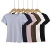 Playera de Manga Corta con Cuello en U Personalizada de Fábrica para el Hombro Derecho para Mujer Verano 2025 Nuevo Algodón Puro Slim Cuello Redondo Bajo