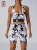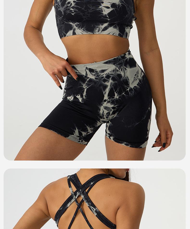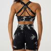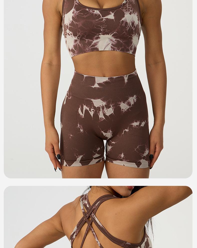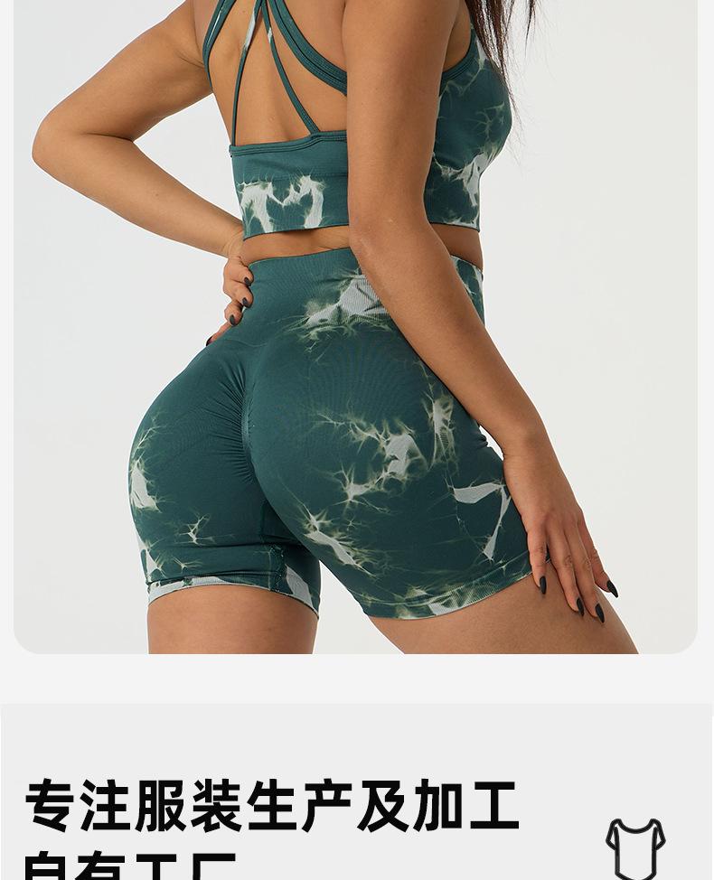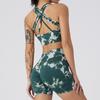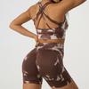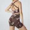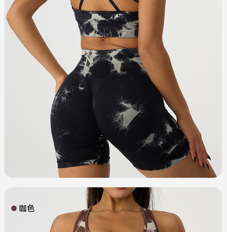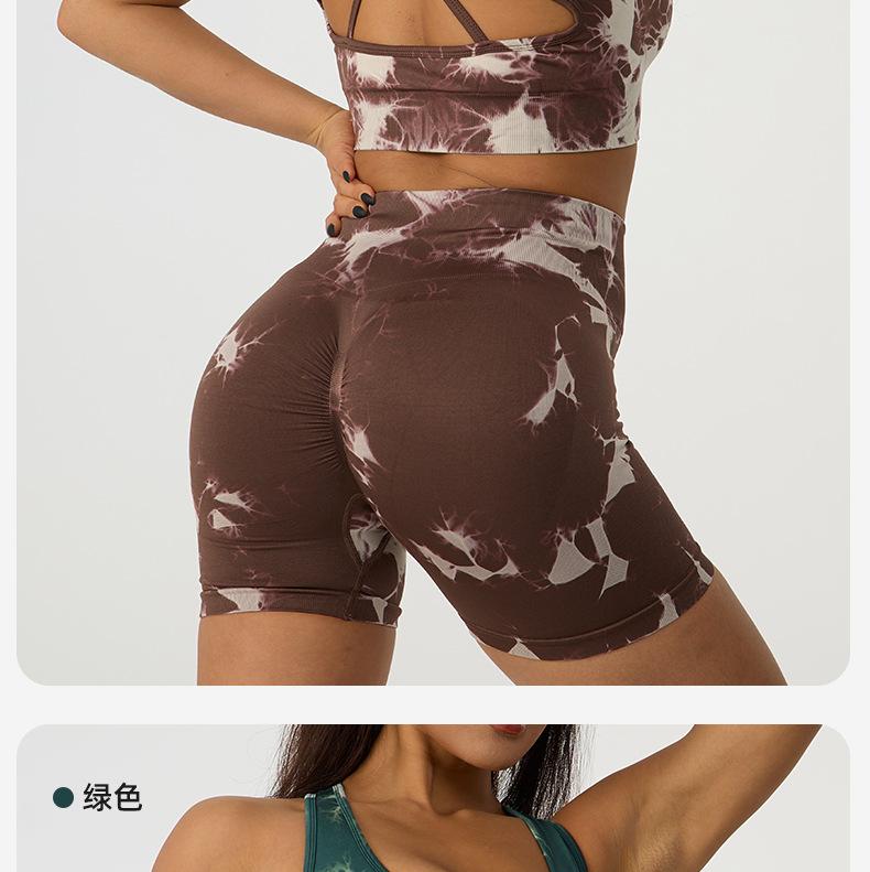 Conjunto de yoga teñido anudado de verano 2025 para mujer, pantalones cortos ajustados para correr, con realce de cadera, color melocotón