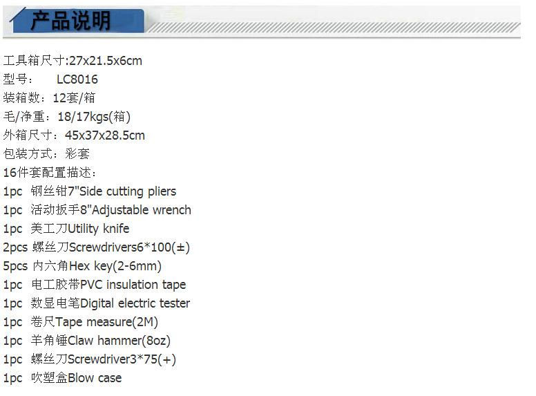 Caja de herramientas de reparación de vehículos de 16 piezas