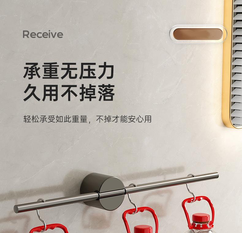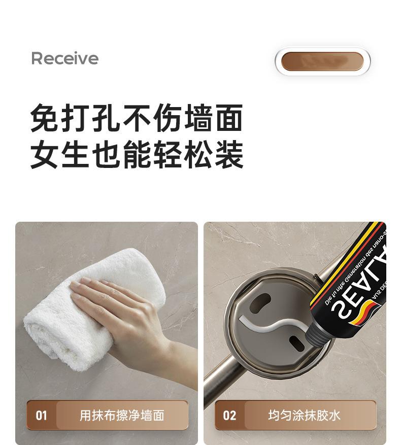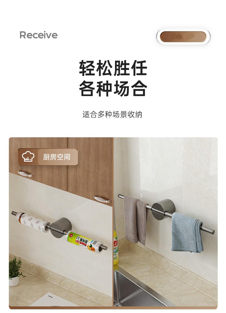 Barra de Toalla Aluminio Espacial Anillo para Colgar Toallas Estante de Almacenamiento sin Perforaciones Montado en la Pared para Baño Cocina Barra de Almacenamiento de Estante Único
